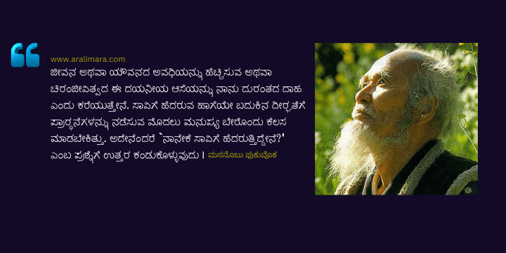 ‘ನೈಸರ್ಗಿಕ ಕೃಷಿ’ಯ ಮೂಲಕ ವಿಶ್ವಾದ್ಯಂತ ಪರಿಚಿತರಾದ ಮಸನೊಬು ಫುಕುವೊಕರ ಚಿಂತನೆ ಅಧ್ಯಾತ್ಮವಲ್ಲದೆ ಮತ್ತೇನೂ ಅಲ್ಲ. ಅವರ ಮಾತುಗಳನ್ನು ಕೇಳಿದರೆ, ಅವರೊಬ್ಬ ‘ಕೃಷಿ ಸಂತ’ ಅನ್ನುವುದರಲ್ಲಿ ಅನುಮಾನವೇ ಉಳಿಯುವುದಿಲ್ಲ. ಫುಕುವೊಕರ ಈ ಸಂದರ್ಶನ, ಅವರ ಕಾಣ್ಕೆಯ ಸೂಕ್ಷ್ಮ ಪರಿಚಯ ಮಾಡಿಸುತ್ತದೆ. ಇದನ್ನು ಇಂಗ್ಲಿಶ್’ನಿಂದ ಕನ್ನಡಕ್ಕೆ ತಂದವರು ಎನ್.ಎ.ಎಮ್.ಇಸ್ಮಾಯಿಲ್.