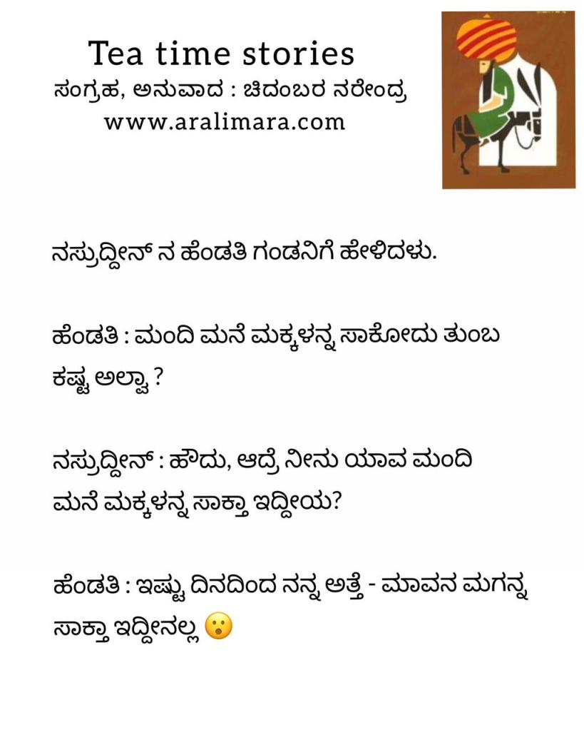 ಮಿಸಸ್ ನಸ್ರುದ್ದೀನಳ ಲಾಜಿಕ್: Tea time story ಫೆಬ್ರವರಿ 19, 2023 By ಅರಳಿ ಮರ ನಸ್ರುದ್ದೀನ್ ಸೇರಾದ್ರೆ, ನಸ್ರುದ್ದೀನ್ ಹೆಂಡ್ತಿ ಸವ್ವಾ ಸೇರು! Share this:Tweet Click to email a link to a friend (Opens in new window) Email Click to share on Telegram (Opens in new window) Telegram Click to share on WhatsApp (Opens in new window) WhatsApp ಇನ್ನಷ್ಟು Click to print (Opens in new window) Print Click to share on Reddit (Opens in new window) Reddit Share on TumblrLike ಲೋಡ್ ಆಗುತ್ತಿದೆ... Related About ಅರಳಿ ಮರ ಆಧ್ಯಾತ್ಮ, ವ್ಯಕ್ತಿತ್ವ ವಿಕಸನ ಮತ್ತು ಜೀವನ ಶೈಲಿ