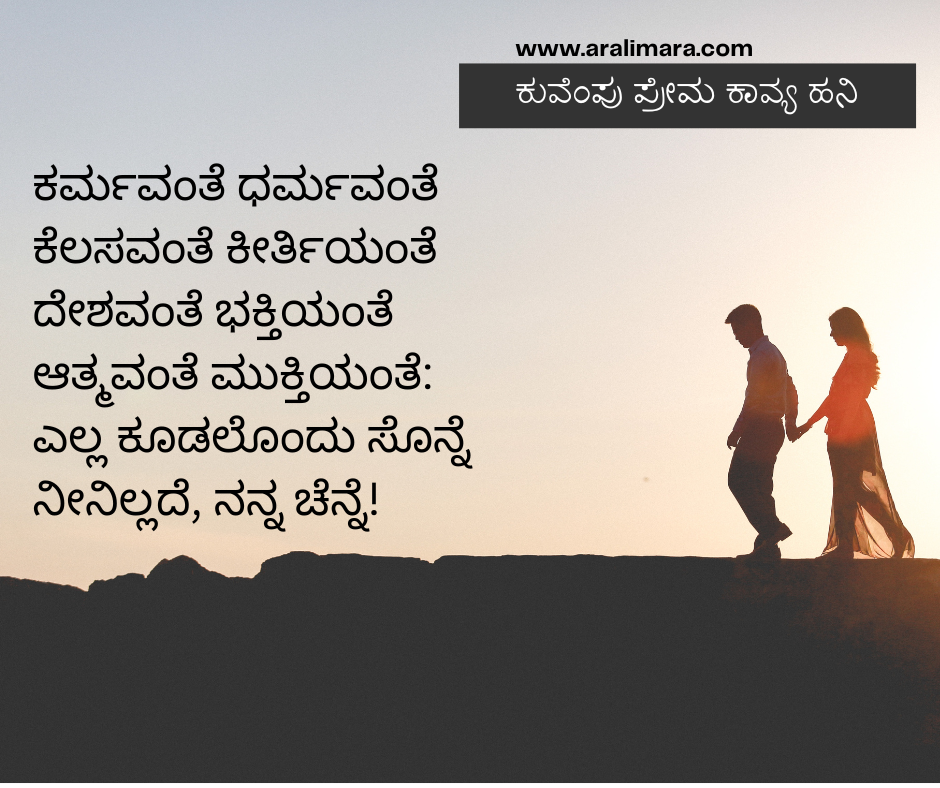 ಕುವೆಂಪು ಪ್ರೇಮಕಾವ್ಯ ಹನಿಗಳು : ಅರಳಿಮರ Posters ಫೆಬ್ರವರಿ 21, 2023 By ಅರಳಿ ಮರ ದಾರ್ಶನಿಕ ಕವಿ ಕುವೆಂಪು ಅವರ ‘ಪ್ರೇಮ ದರ್ಶನ’ದ 6 ಕಾವ್ಯಹನಿಗಳ Posters ಇಲ್ಲಿವೆ… 1 2 3 4 5 6 Share this:Tweet Click to email a link to a friend (Opens in new window) Email Click to share on Telegram (Opens in new window) Telegram Click to share on WhatsApp (Opens in new window) WhatsApp ಇನ್ನಷ್ಟು Click to print (Opens in new window) Print Click to share on Reddit (Opens in new window) Reddit Share on TumblrLike ಲೋಡ್ ಆಗುತ್ತಿದೆ... Related About ಅರಳಿ ಮರ ಆಧ್ಯಾತ್ಮ, ವ್ಯಕ್ತಿತ್ವ ವಿಕಸನ ಮತ್ತು ಜೀವನ ಶೈಲಿ