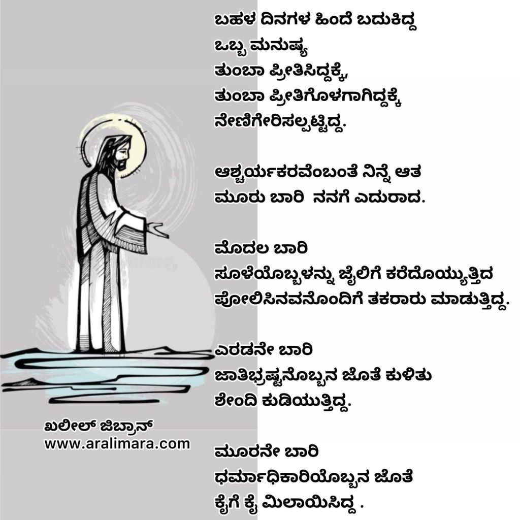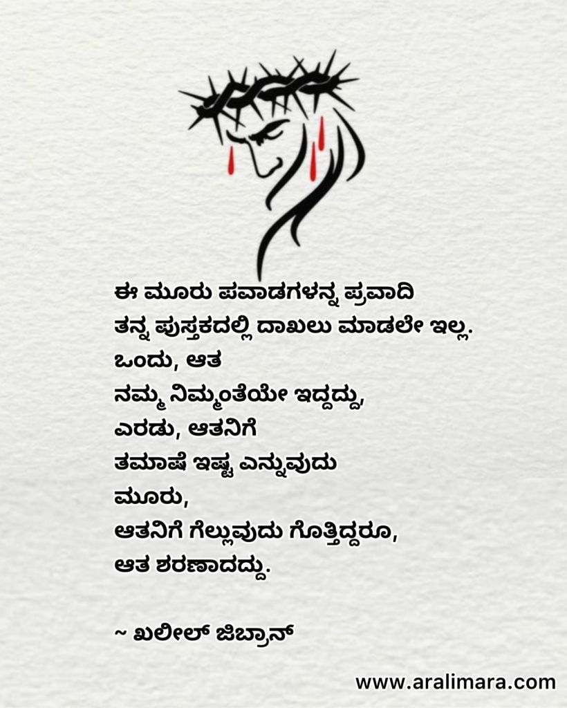 ಜಿಬ್ರಾನ್ ಕಂಡಂತೆ ಕ್ರಿಸ್ತ… ಡಿಸೆಂಬರ್ 25, 2023 By ಅರಳಿ ಮರ ಏಸು ಕ್ರಿಸ್ತನನ್ನು ಸಮರ್ಥವಾಗಿ ಚಿತ್ರಿಸುವ ಖಲೀಲ್ ಜಿಬ್ರಾನನ ಎರಡು ಪದ್ಯಗಳು ಇಲ್ಲಿವೆ… | ಅನುವಾದ : ಚಿದಂಬರ ನರೇಂದ್ರ Share this:Tweet Click to email a link to a friend (Opens in new window) Email Click to share on Telegram (Opens in new window) Telegram Click to share on WhatsApp (Opens in new window) WhatsApp ಇನ್ನಷ್ಟು Click to print (Opens in new window) Print Click to share on Reddit (Opens in new window) Reddit Share on TumblrLike ಲೋಡ್ ಆಗುತ್ತಿದೆ... Related About ಅರಳಿ ಮರ ಆಧ್ಯಾತ್ಮ, ವ್ಯಕ್ತಿತ್ವ ವಿಕಸನ ಮತ್ತು ಜೀವನ ಶೈಲಿ