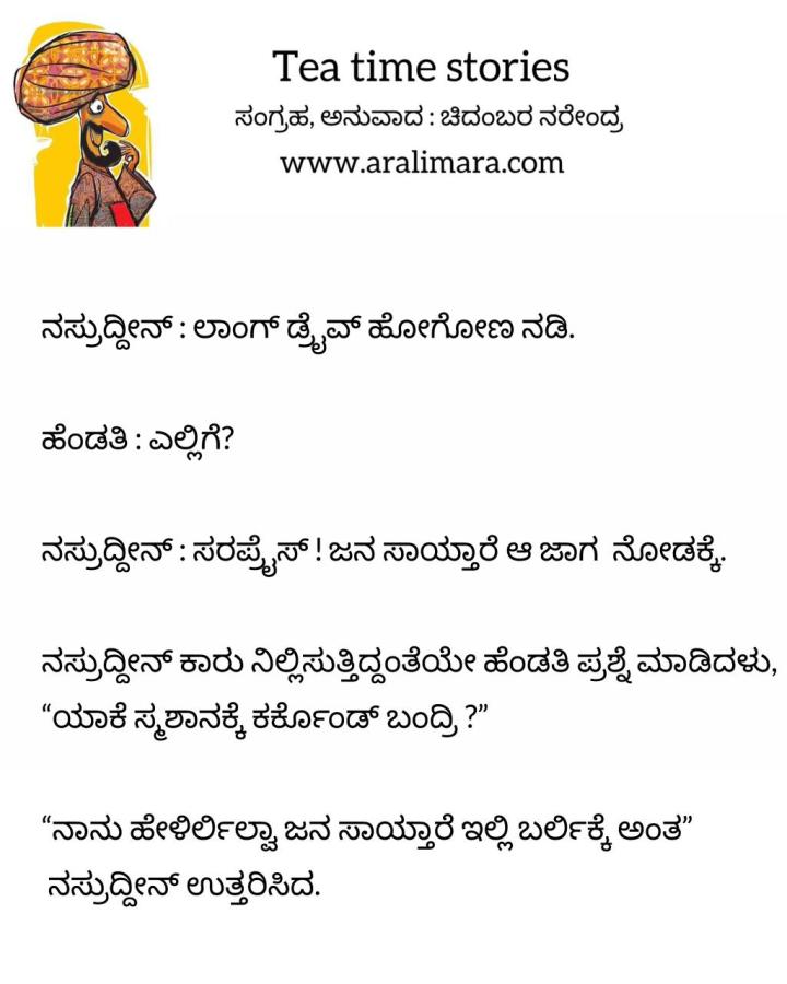 ನಸ್ರುದ್ದೀನನ ಟ್ರಿಪ್ : Tea time Story ಜನವರಿ 16, 2024 By ಅರಳಿ ಮರ Share this:Tweet Click to email a link to a friend (Opens in new window) Email Click to share on Telegram (Opens in new window) Telegram Click to share on WhatsApp (Opens in new window) WhatsApp ಇನ್ನಷ್ಟು Click to print (Opens in new window) Print Click to share on Reddit (Opens in new window) Reddit Share on TumblrLike ಲೋಡ್ ಆಗುತ್ತಿದೆ... Related About ಅರಳಿ ಮರ ಆಧ್ಯಾತ್ಮ, ವ್ಯಕ್ತಿತ್ವ ವಿಕಸನ ಮತ್ತು ಜೀವನ ಶೈಲಿ
