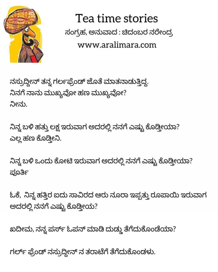 ಸಿಕ್ಕಿಬಿದ್ದ ನಸ್ರುದ್ದೀನ್! : Tea time story ಮಾರ್ಚ್ 20, 2024 By ಅರಳಿ ಮರ Share this:Tweet Click to email a link to a friend (Opens in new window) Email Click to share on Telegram (Opens in new window) Telegram Click to share on WhatsApp (Opens in new window) WhatsApp ಇನ್ನಷ್ಟು Click to print (Opens in new window) Print Click to share on Reddit (Opens in new window) Reddit Share on TumblrLike ಲೋಡ್ ಆಗುತ್ತಿದೆ... Related About ಅರಳಿ ಮರ ಆಧ್ಯಾತ್ಮ, ವ್ಯಕ್ತಿತ್ವ ವಿಕಸನ ಮತ್ತು ಜೀವನ ಶೈಲಿ