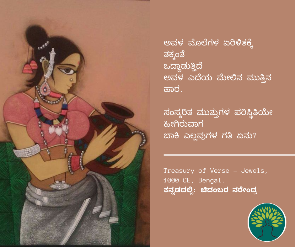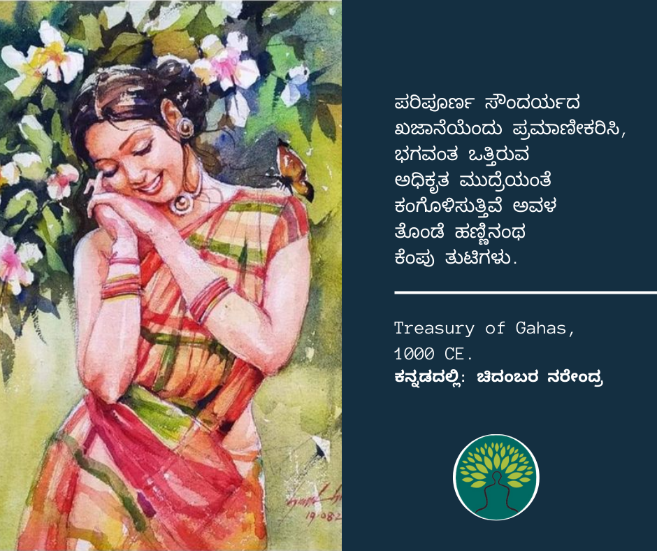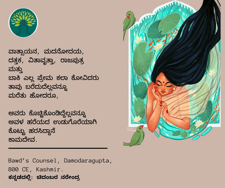ಸಂಸ್ಕೃತದ ಅಗಾಧ ಪ್ರೇಮಕಾವ್ಯದ ಸಾಗರದಿಂದ ಹೆಕ್ಕಲಾದ ಸುಂದರ ಸಾಲುಗಳ ಗುಚ್ಛವೊಂದು ಇಂಗ್ಲೀಶಿನಲ್ಲಿ ಪುಸ್ತಕವಾಗಿದೆ. ಈ ಪುಸ್ತಕದ ಕೆಲವು ಪದ್ಯಗಳನ್ನು ಚಿದಂಬರ ನರೇಂದ್ರ ಅವರು ಕನ್ನಡಕ್ಕೆ ತಂದಿದ್ದಾರೆ. ಅವುಗಳಲ್ಲಿ ಏಳನೇ ಕಂತು ಇಲ್ಲಿದೆ… । ಆಕರ : How to love in sanskrit; ಕನ್ನಡದಲ್ಲಿ: ಚಿದಂಬರ ನರೇಂದ್ರ