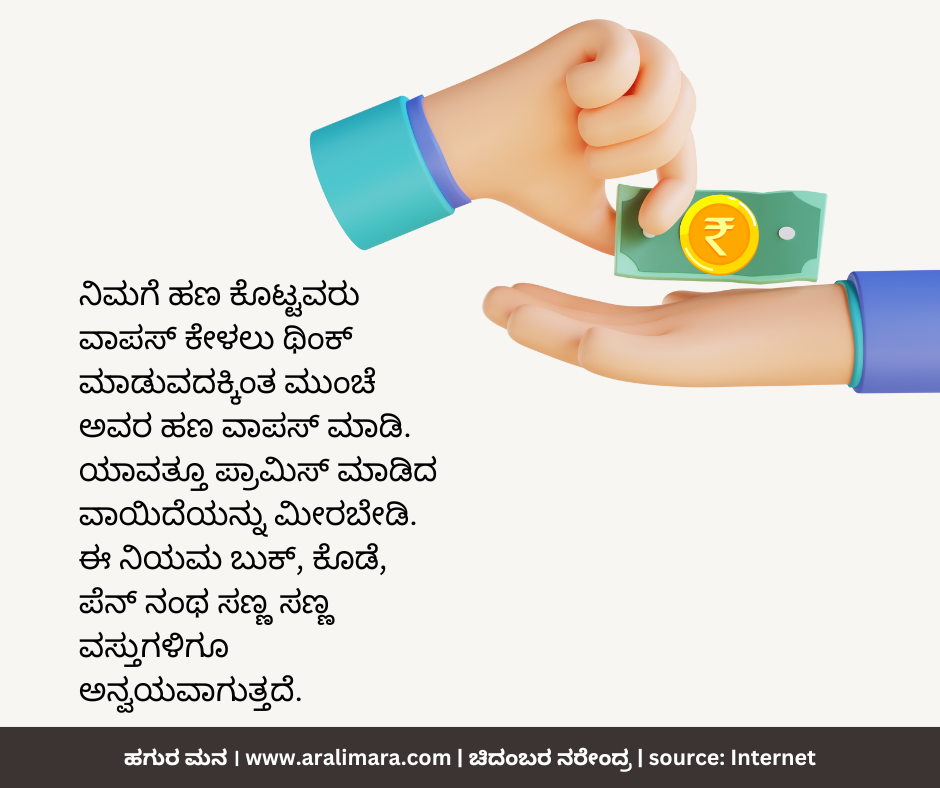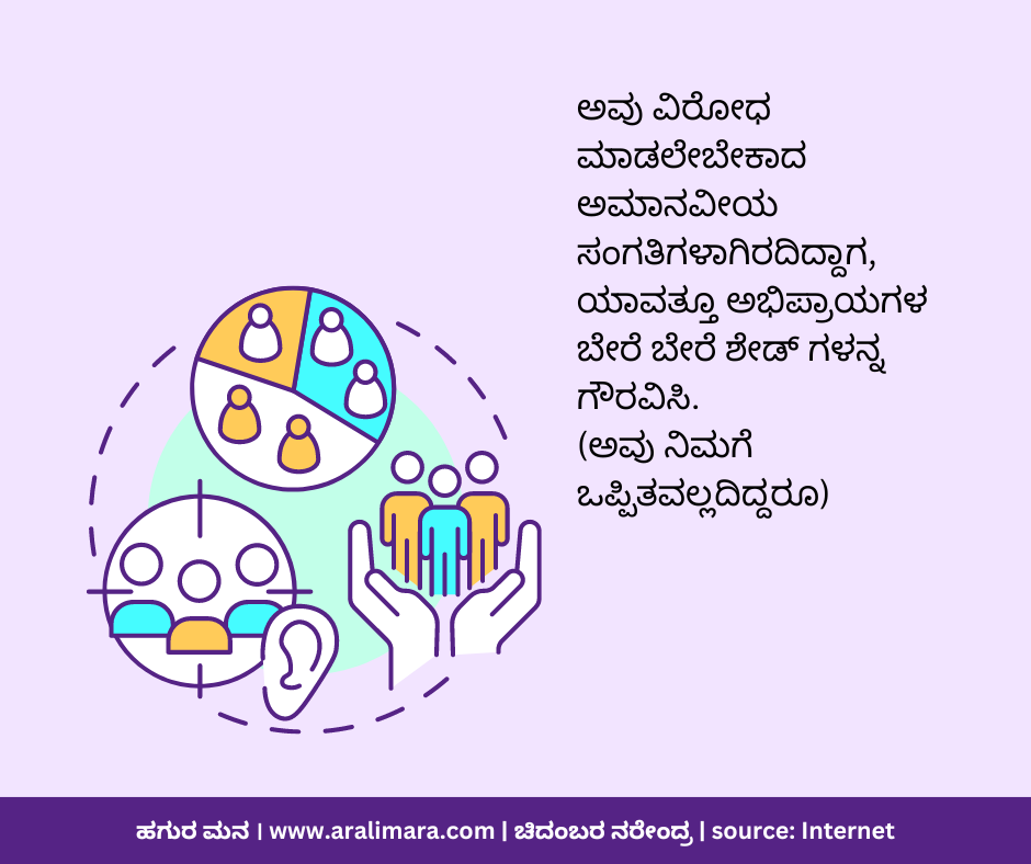 ಬದುಕನ್ನು ಸುಂದರಗೊಳಿಸುವುದು, ನಮ್ಮ ವ್ಯಕ್ತಿತ್ವವನ್ನು ಸಭ್ಯವಾಗಿರಿಸುವುದು ನಮ್ಮ ಸಂವಹನ ಕೌಶಲ್ಯ. ನಾವು ಎಷ್ಟೇ ಉತ್ತಮರಾಗಿದ್ದರೂ ನಡವಳಿಕೆಯಲ್ಲಿ ಅದನ್ನು ವ್ಯಕ್ತಗೊಳಿಸುವ ರೀತಿ ತಿಳಿದಿಲ್ಲದೆ ಹೋದರೆ ಸಮಾಜದಲ್ಲಿ ನಾವು ನಮಗೆ ತಕ್ಕ ಗೌರವಾದರ ಪಡೆಯಲು ಸಾಧ್ಯವಾಗದೆ ಹೋಗಬಹುದು. ಆದ್ದರಿಂದ ಬದುಕು ಎಲ್ಲ ರೀತಿಯಿಂದಲೂ ಸುಂದರವಾಗಿ ಹೊಮ್ಮಬೇಕೆಂದರೆ ಈ ಕೆಲವು ಸೂತ್ರಗಳನ್ನು ಅನುಸರಿಸಿ. ಈ ಚಿಕ್ಕಚಿಕ್ಕ ಸಂಗತಿಗಳು ನಿಮಗೆ ತಿಳಿದಿರುವುದೇ ಆದರೂ ಕೆಲವೊಮ್ಮೆ ಧಾವಂತ ಅಥವಾ ಮತ್ತೇನೋ ಆಲೋಚನೆಯಲ್ಲಿ ಅವು ಸಮಯಕ್ಕೆ ಸರಿಯಾಗಿ ಹೊಳೆಯದೆ ಹೋಗಬಹುದು. ಅವನ್ನು ಮತ್ತೊಮ್ಮೆ ನೆನಪಿಸಿಕೊಳ್ಳಲು ಈ ಚಿತ್ರಿಕೆಗಳು ನೆರವಾದಾವು । Poster content courtesy: ಚಿದಂಬರ ನರೇಂದ್ರ