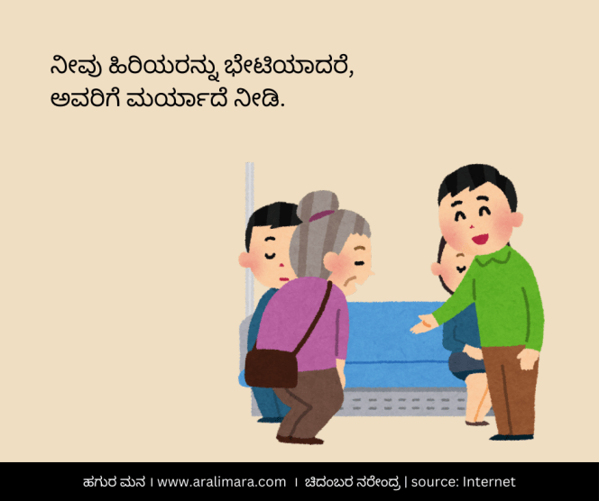ನಮ್ಮ ಅರಿವು ಮೀರಿ ಕೆಲವೊಮ್ಮೆ ಯಾರು ಯಾರ ಜೊತೆಗೋ ಹೇಗೆ ಹೇಗೋ ನಡೆದುಕೊಂಡು ಬಿಡುತ್ತೇವೆ. ಮಕ್ಕಳ ಮುಂದೆ ಭಾಷಣ ಬಿಗಿಯುತ್ತೇವೆ, ಮುಪ್ಪಿನವರ ಮುಂದೆ ಸ್ವಾವಲಂಬನೆಯ ಮಾತಾಡುತ್ತೇವೆ… ಹೀಗೇ ಏನೇನೋ. ಪ್ರಜ್ಞಾಪೂರ್ವಕವಾಗಿ ಇಂಥ ತಪ್ಪುಗಳನ್ನು ತಡೆಯಬೇಕು. ಇಲ್ಲವಾದರೆ ನಾವು ಸಮಾಜದಲ್ಲಿ ಸಭ್ಯ ವ್ಯಕ್ತಿಯೆಂದು ಕರೆಸಿಕೊಳ್ಳಲು ಆಗುವುದಿಲ್ಲ. ಸಮಾಜದಲ್ಲಿ ಇದ್ದಮೇಲೆ, ಸಾಮಾಜಿಕ ನಿಯಮಗಳಿಗೆ ಅನುಸಾರವೇ ಬದುಕಬೇಕು. ಈ ನಿಟ್ಟಿನಲ್ಲಿ ಇಲ್ಲಿವೆ, 20 ಸರಳ ಟಿಪ್ಸ್. ಸಂಗ್ರಹಾನುವಾದ : ಚಿದಂಬರ ನರೇಂದ್ರ