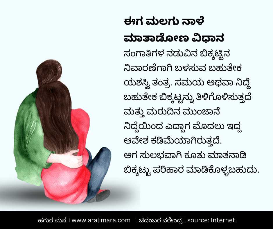 ಸಂಬಂಧಗಳಲ್ಲಿ ತಲೆದೋರುವ ಬಿಕ್ಕಟ್ಟುಗಳನ್ನು ಎದುರಿಸಲು, ನಿವಾರಿಸಲು 10 ಸರಳ ಸೂತ್ರಗಳು ಇಲ್ಲಿವೆ… ನೆನಪಿರಲಿ, ಒಂದು ಯಶಸ್ವಿ ಸಂಬಂಧಕ್ಕೆ ಹಲವಾರು ತಂತ್ರಗಳನ್ನು ಬಳಸಬಹುದಾದರೂ ಅವು ಸಹನೆ, ನಂಬಿಕೆ ಮತ್ತು ಪ್ರೀತಿಯ ನೆಲಗಟ್ಟಿನ ಮೇಲೆ ಸೃಷ್ಟಿಯಾಗಿರಬೇಕು. ನಿಮಗೆ ಒಳ್ಳೆಯದಾಗಲಿ… ~ ಸಂಗ್ರಹಾನುವಾದ: ಚಿದಂಬರ ನರೇಂದ್ರ