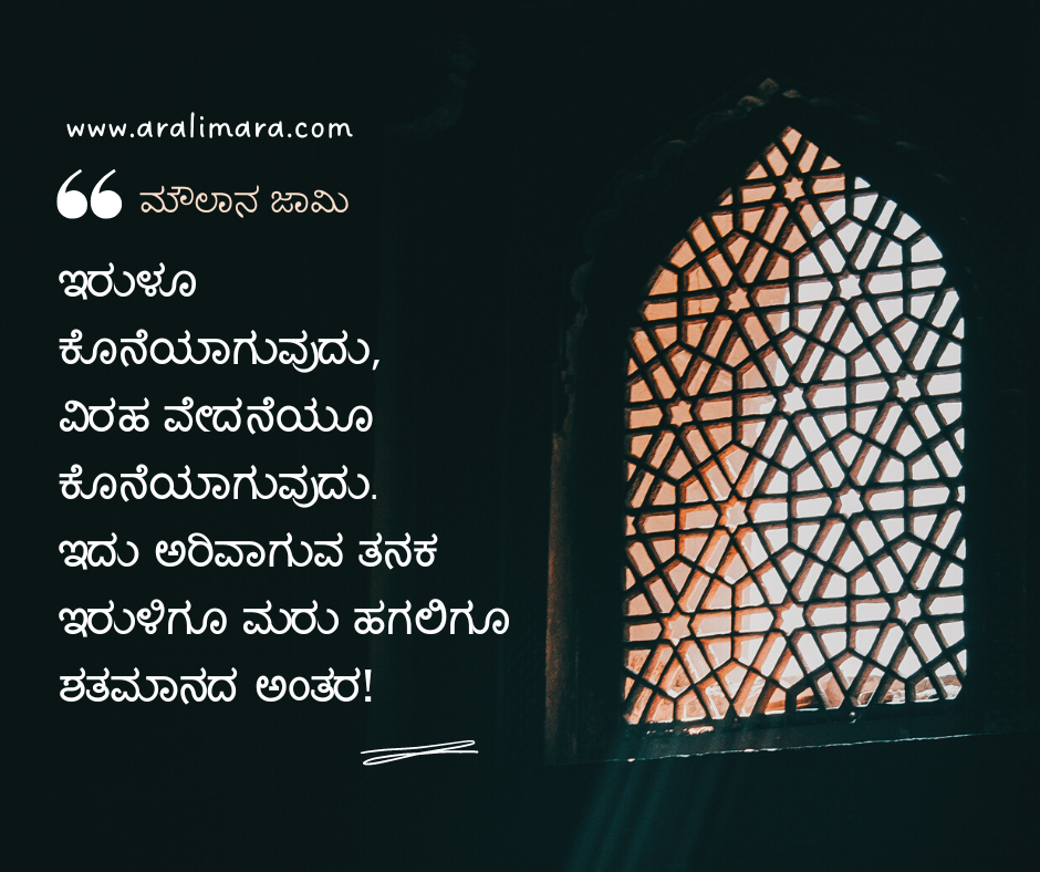 ಸೂಫಿ ಮೌಲಾನ ಜಾಮಿ (ನೂರುದ್ದಿನ್ ಅಬ್ದರ್ ರೆಹಮಾನ್ ಜಾಮಿ) ಖೊರಾಸನ್ ಸಾಮ್ರಾಜ್ಯದ ತೋರ್ಬತ್ ಜಾಮ್ ಎಂಬ ಪ್ರದೇಶದಲ್ಲಿ ಇದ್ದವನು. ಸೂಫಿ – ಪರ್ಶಿಯನ್ ಸಾಹಿತ್ಯದ ಬಹುಮುಖ್ಯ ಕವಿಗಳಲ್ಲಿ ಜಾಮಿಯೂ ಒಬ್ಬ. ಈತನ ಕಾಲಾವಧಿ 15ನೇ ಶತಮಾನ. ಜಾಮಿಯ ‘ತಿಳಿ’ಗೊಳದ 6 ಹನಿಗಳು ಇಲ್ಲಿವೆ… । ಸಂಗ್ರಹ ಮತ್ತು ಅನುವಾದ: ಚೇತನಾ ತೀರ್ಥಹಳ್ಳಿ