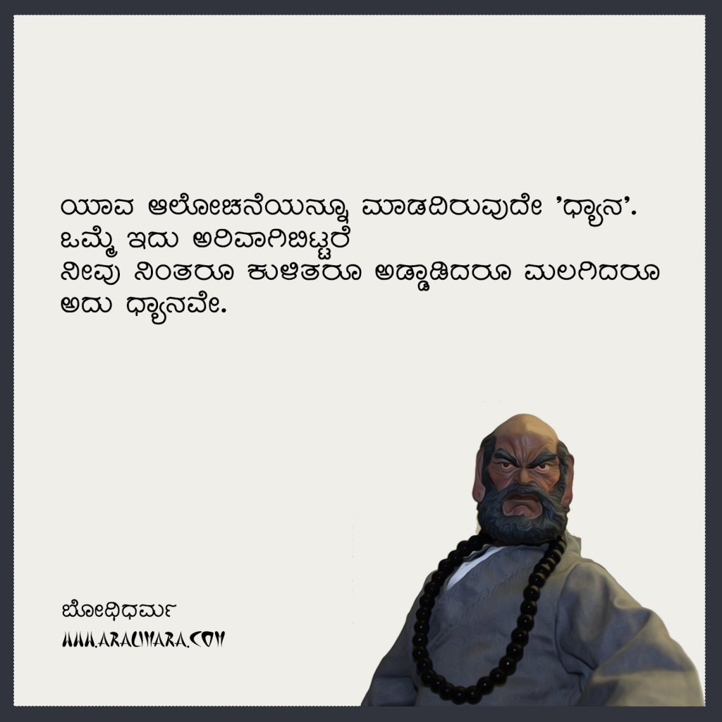 ಬೌದ್ಧ – ಝೆನ್ ಪಂಥದ ಸ್ಥಾಪಕರೂ, ಜಾಝೆನ್ ಧ್ಯಾನ ಪದ್ಧತಿ ಮತ್ತು ಕುಂಗ್ ಫು ಯುದ್ಧ ಕಲೆಯ ಪ್ರವರ್ತಕರೂ ಆದ ಬೋಧಿಧರ್ಮರ (ಚೀನಾ, ಜಪಾನ್`ಗಳಲ್ಲಿ ಈತನನ್ನು ದರುಮ ಎಂದು ಕರೆಯಲಾಗುತ್ತದೆ) ಕೆಲವು ಹೊಳಹುಗಳು ಇಲ್ಲಿವೆ… । ಸಂಗ್ರಹ ಮತ್ತು ಅನುವಾದ: ಅಲಾವಿಕಾ