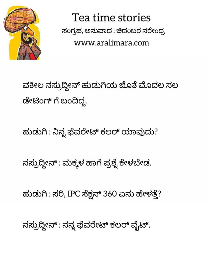 ನಸ್ರುದ್ದೀನನ ಡೇಟಿಂಗ್ : Tea time story ಜುಲೈ 19, 2024 By ಅರಳಿ ಮರ Share this:Tweet Click to email a link to a friend (Opens in new window) Email Click to share on Telegram (Opens in new window) Telegram Click to share on WhatsApp (Opens in new window) WhatsApp ಇನ್ನಷ್ಟು Click to print (Opens in new window) Print Click to share on Reddit (Opens in new window) Reddit Share on TumblrLike ಲೋಡ್ ಆಗುತ್ತಿದೆ... Related About ಅರಳಿ ಮರ ಆಧ್ಯಾತ್ಮ, ವ್ಯಕ್ತಿತ್ವ ವಿಕಸನ ಮತ್ತು ಜೀವನ ಶೈಲಿ