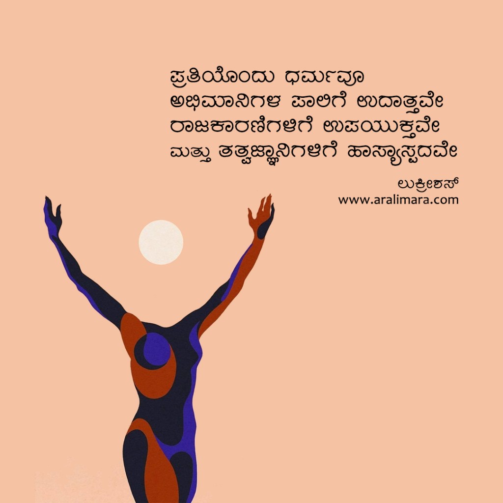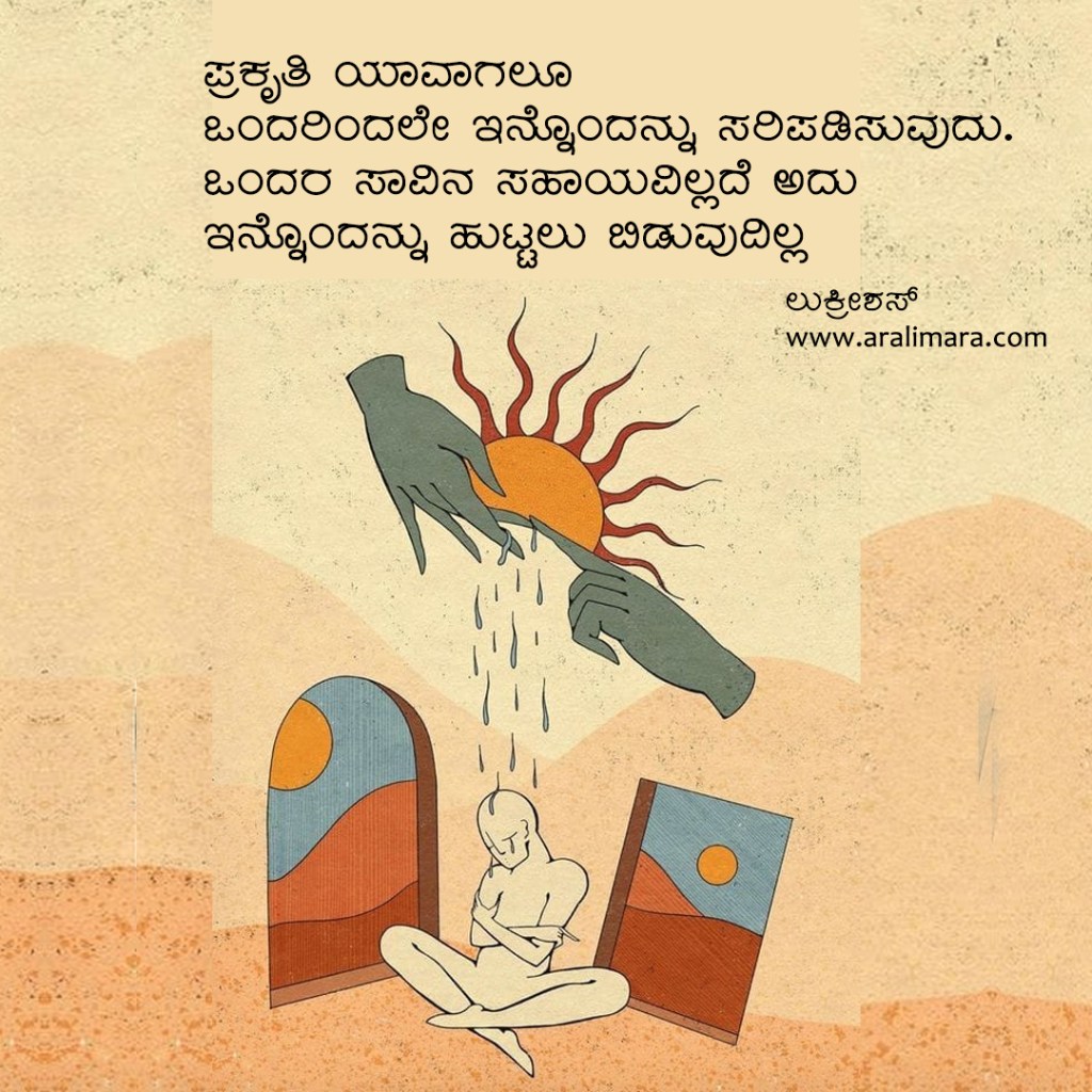 ಟೈಟಸ್ ಲುಕ್ರೀಶಸ್ ಕಾರಸ್ ಕ್ರಿ.ಪೂ.ಒಂದನೇ ಶತಮಾನದಲ್ಲಿ ಜೀವಿಸಿದ್ದ ರೋಮನ್ ಕವಿ, ತತ್ತ್ವಜ್ಞ. ಇವನ ಕೆಲವು ಹೊಳಹುಗಳು ಇಂದಿನ ‘ಚಿತ್ರಭಿತ್ತಿ’ಯಲ್ಲಿ… । ಕನ್ನಡಕ್ಕೆ: ಚೇತನಾ ತೀರ್ಥಹಳ್ಳಿ
