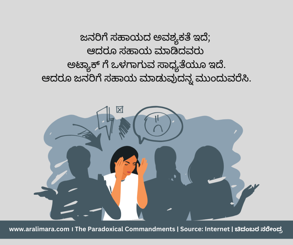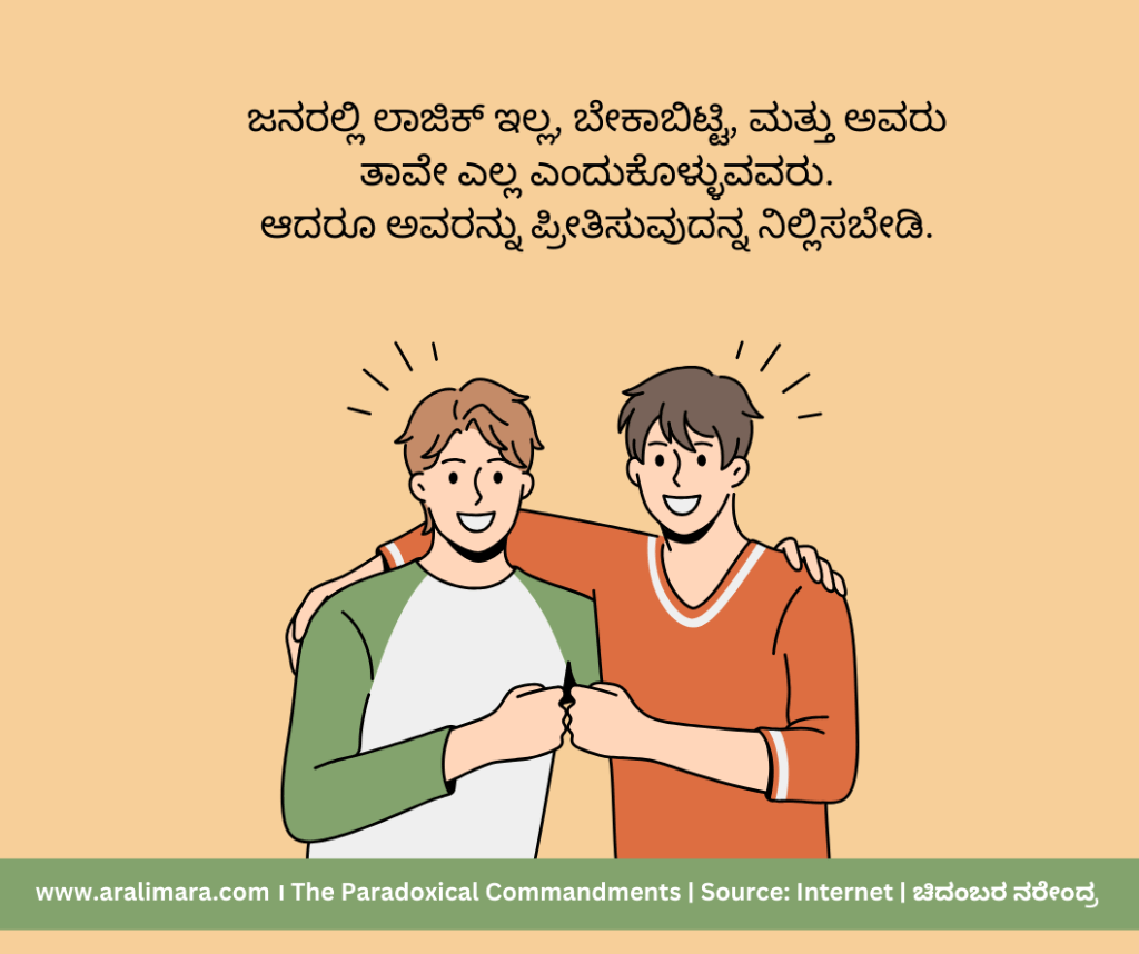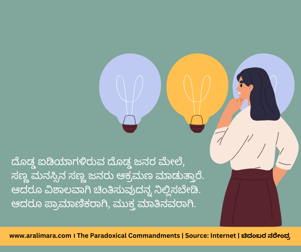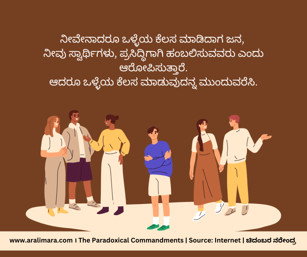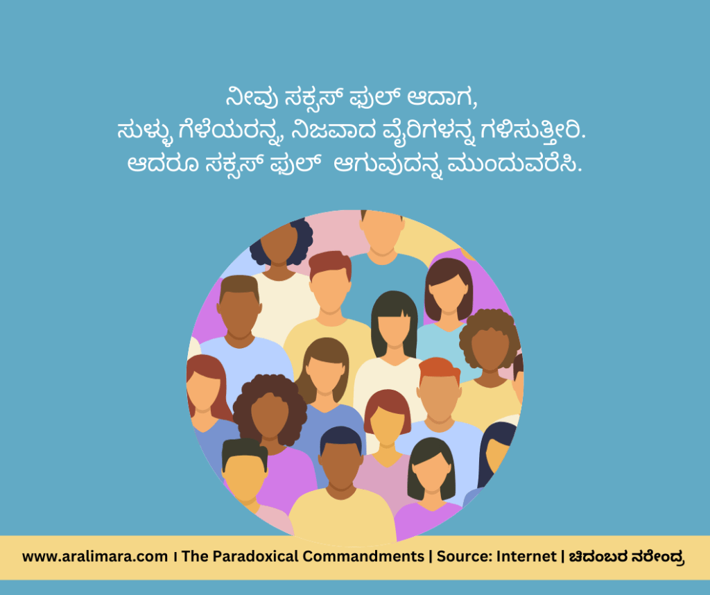 ಜೀವನದಲ್ಲಿ ಕೆಲವು ಸಲಹೆಗಳು ವಿರೋಧಾಭಾಸದಿಂದ ಕೂಡಿರುತ್ತವೆ. ಆದರೂ ಅವು ನಮ್ಮ ಬೆಳವಣಿಗೆಗೆ ಪೂರಕವಾಗಿಯೇ ಇರುತ್ತವೆ. ಅಂಥ ಕೆಲವು ಹೇಳಿಕೆಗಳು ಇಲ್ಲಿವೆ… । ಸಂಗ್ರಹ ಮತ್ತು ಅನುವಾದ: ಚಿದಂಬರ ನರೇಂದ್ರ