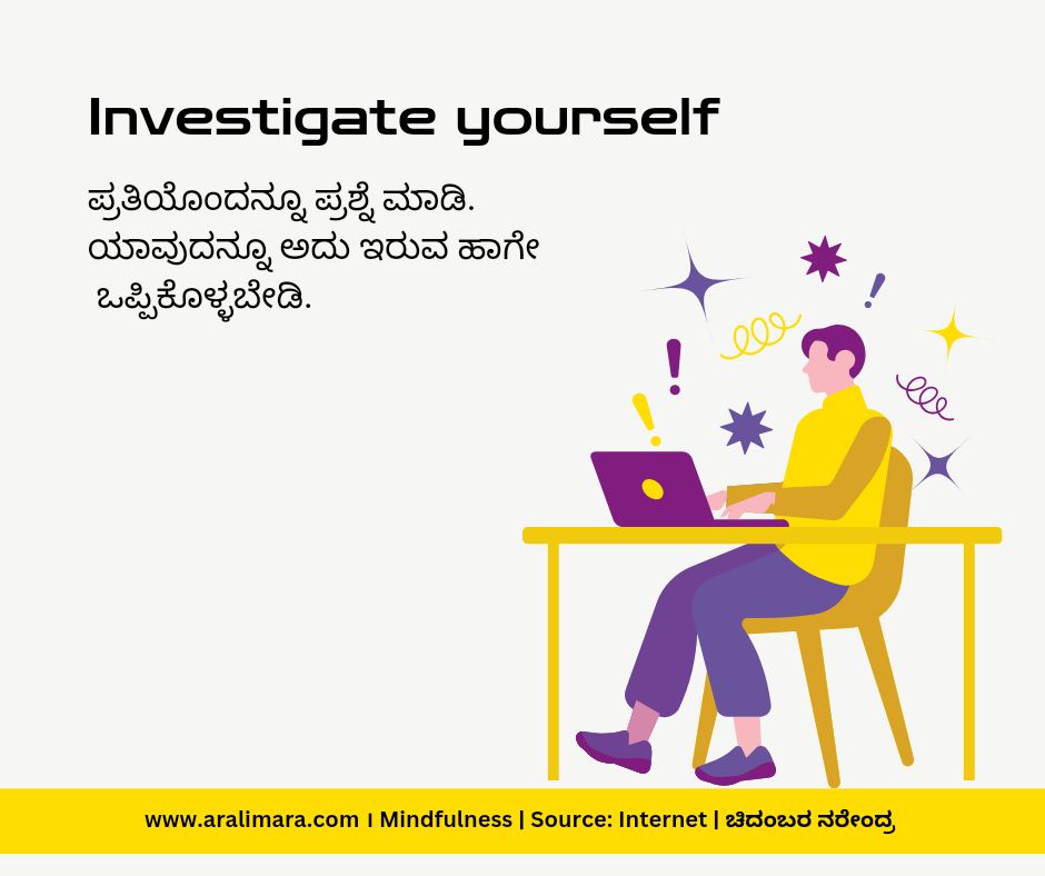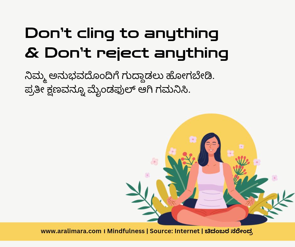ಮನಸ್ಸನ್ನು ಸಂಪೂರ್ಣವಾಗಿ ಎಚ್ಚರದಲ್ಲಿಟ್ಟುಕೊಂಡು ನಡೆಸುವ ಯಾವುದೇ ಕೆಲಸ, ಧ್ಯಾನವೆಂದು ಕರೆಸಿಕೊಳ್ಳಲು ಯೋಗ್ಯ. ಅದು ನಿತ್ಯದ ಬದುಕಿನ ಚಟುವಟಿಕೆಯಾದರೂ ಸರಿ, ಬದುಕಿನ ಶೈಲಿಯಾದರೂ ಸರಿ. ಅಂತಹ 10 ಸಂಗತಿಗಳು ಇಲ್ಲಿವೆ… | ಸಂಗ್ರಹ ಮತ್ತು ಅನುವಾದ: ಚಿದಂಬರ ನರೇಂದ್ರ