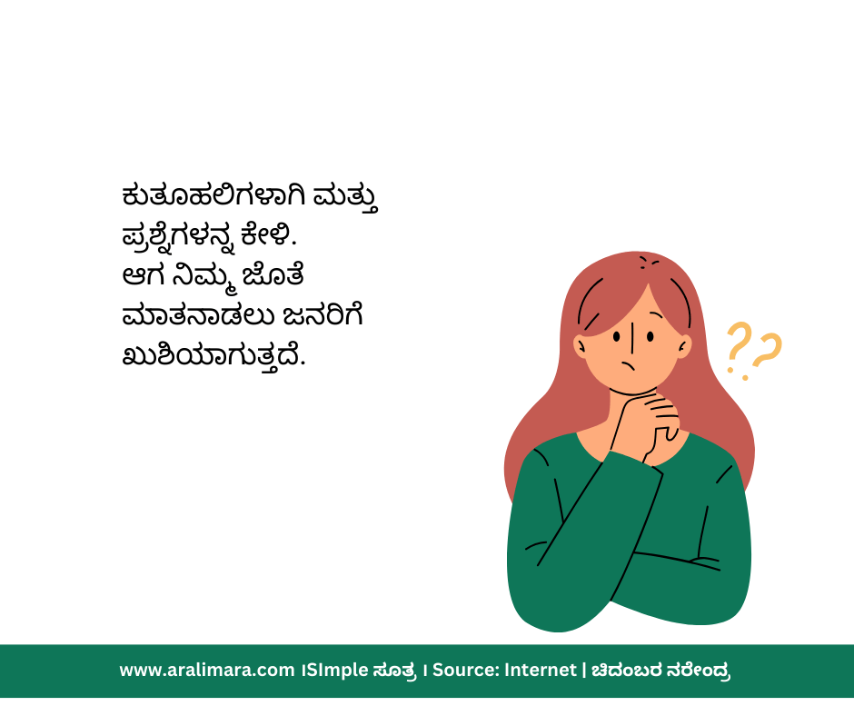 ಆಕರ್ಷಕರಾಗಿರುವುದು ಕೇವಲ ಲುಕ್ಸ್ ಗೆ ಸಂಬಂಧಿಸಿದ್ದಲ್ಲ. ಜನರೊಂದಿನ ನಿಮ್ಮ ವ್ಯವಹಾರ, ನಿಮ್ಮ ಹವ್ಯಾಸಗಳು, ನಿಮ್ಮ ಎಂಪಥಿ, ನಿಮ್ಮ ಸಹಾಯ ಮಾಡುವ ಗುಣ, ಜನರಲ್ಲಿ ನೀವು ತೋರಿಸುವ ಆಸಕ್ತಿ ಎಲ್ಲವೂ ನಿಮ್ಮನ್ನು ಆಕರ್ಷಕರನ್ನಾಗಿಸುತ್ತವೆ ~ ಸಂಗ್ರಹಾನುವಾದ : ಚಿದಂಬರ ನರೇಂದ್ರ