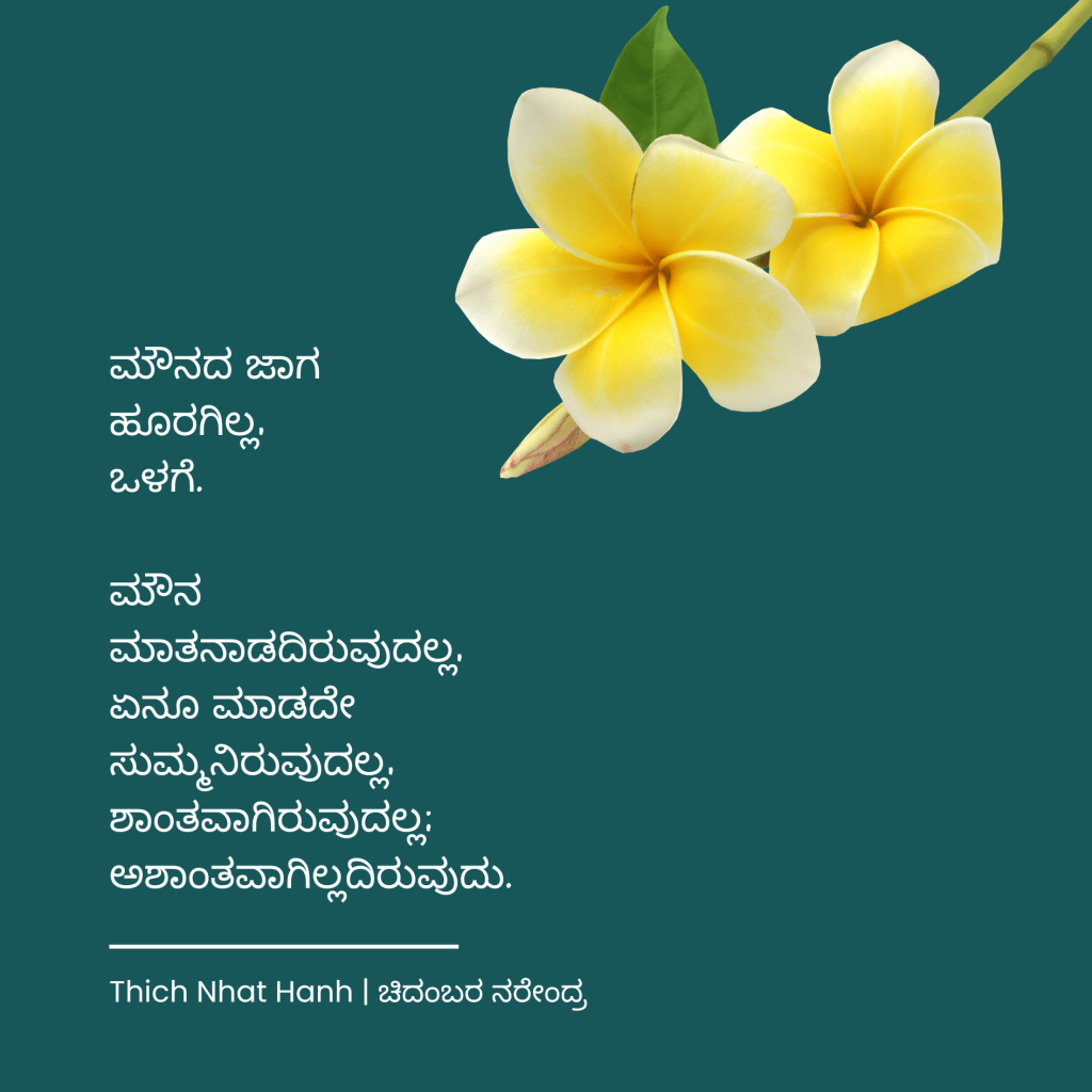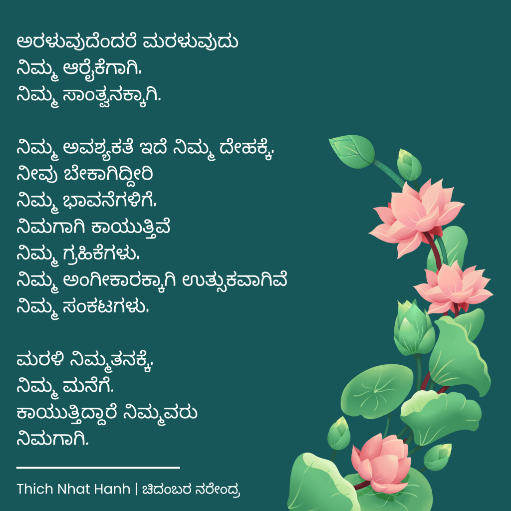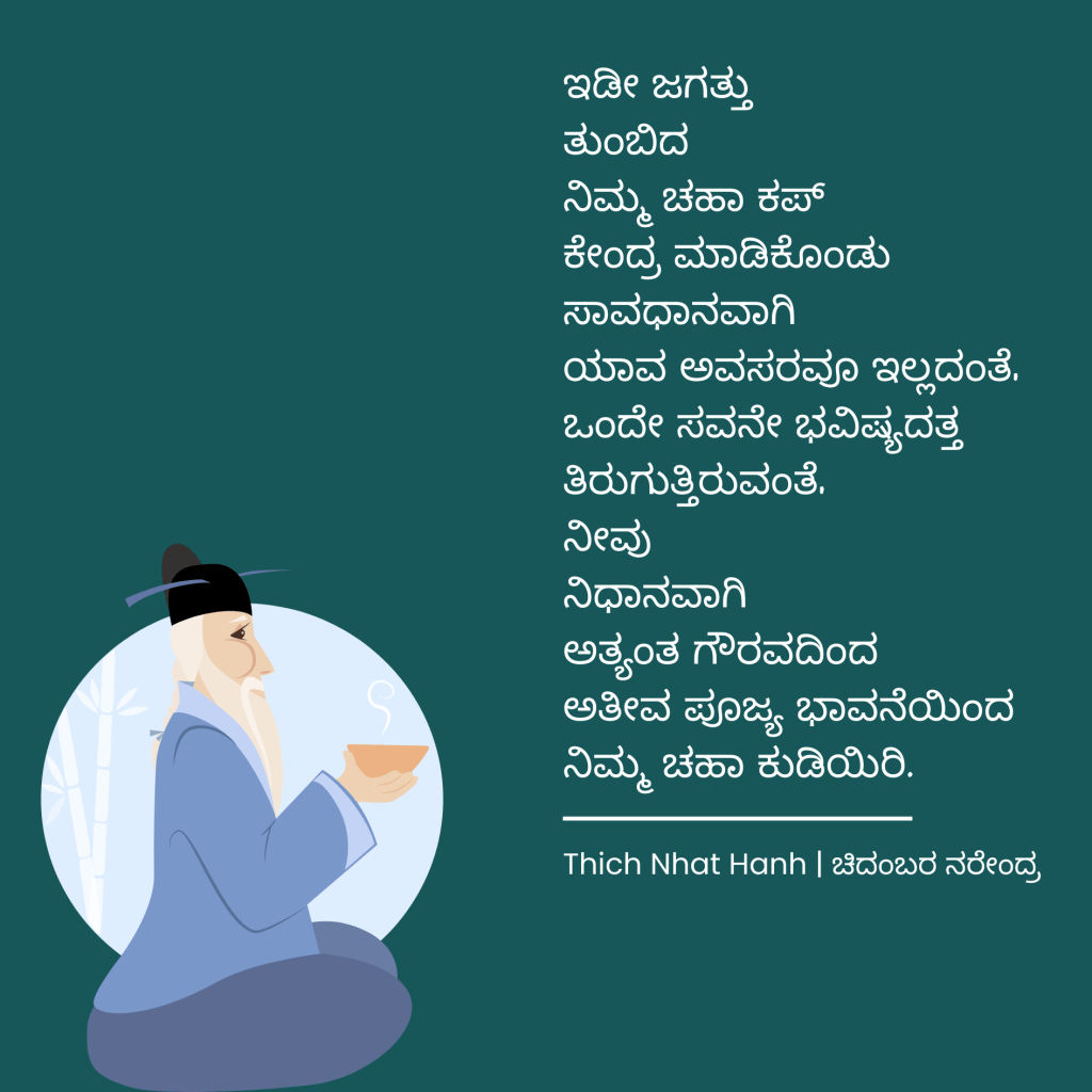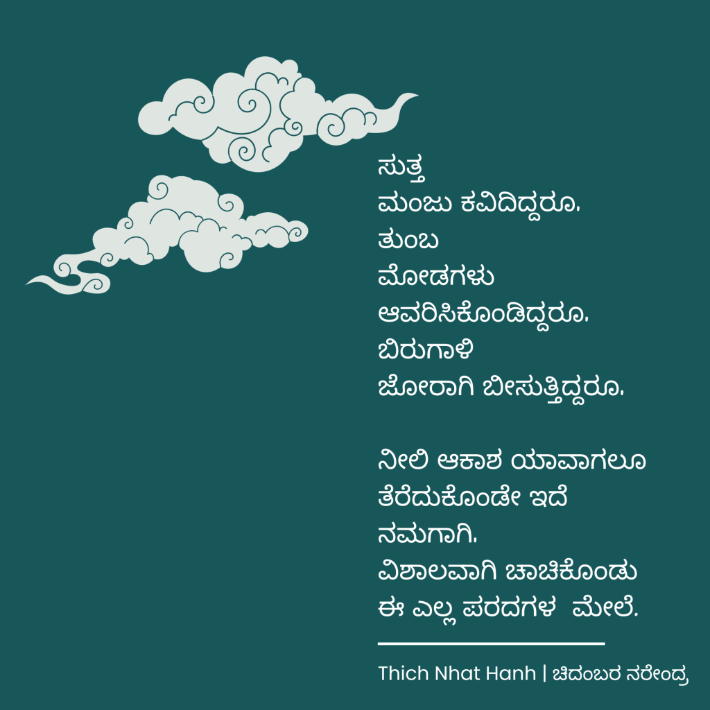 ಇಂದು ನಮ್ಮ ಕಾಲದ ಮಹತ್ವದ ಬೌದ್ಧ ಗುರು Thich Nhat Hanh ಜನ್ಮದಿನದ ಶುಭಸ್ಮರಣೆ. ಈ ಸಂದರ್ಭದಲ್ಲಿ ಗುರುವಿನ ಕೆಲವು ಅರಿವಿನ ಹೊಳಹು ಇಲ್ಲಿವೆ… । ಕನ್ನಡಕ್ಕೆ: ಚಿದಂಬರ ನರೇಂದ್ರ
