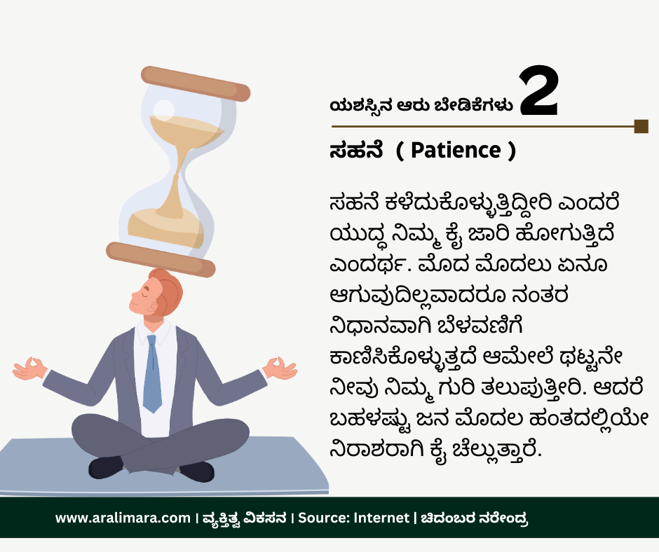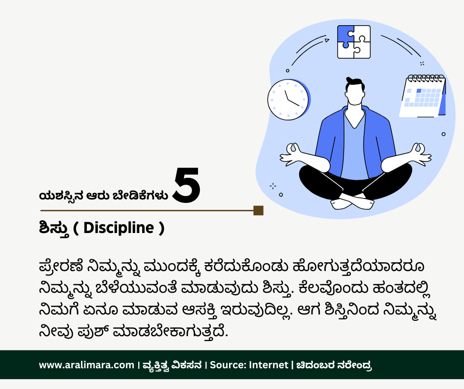ಯಶಸ್ಸು ಯಾವತ್ತೂ ಸುಲಭದ ತುತ್ತಲ್ಲ. ಅದಕ್ಕೆ ಕೆಲವು ಸಂಗತಿಗಳನ್ನು ತಪ್ಪದೆ ಪಾಲಿಸುವ ಬದ್ಧತೆ ಬೇಕಾಗುತ್ತದೆ. ಅಂಥಾ 6 ಪಾಲಿಸಲೇಬೇಕಾದ ಅಂಶಗಳು ಇಲ್ಲಿವೆ… । ಚಿದಂಬರ ನರೇಂದ್ರ
