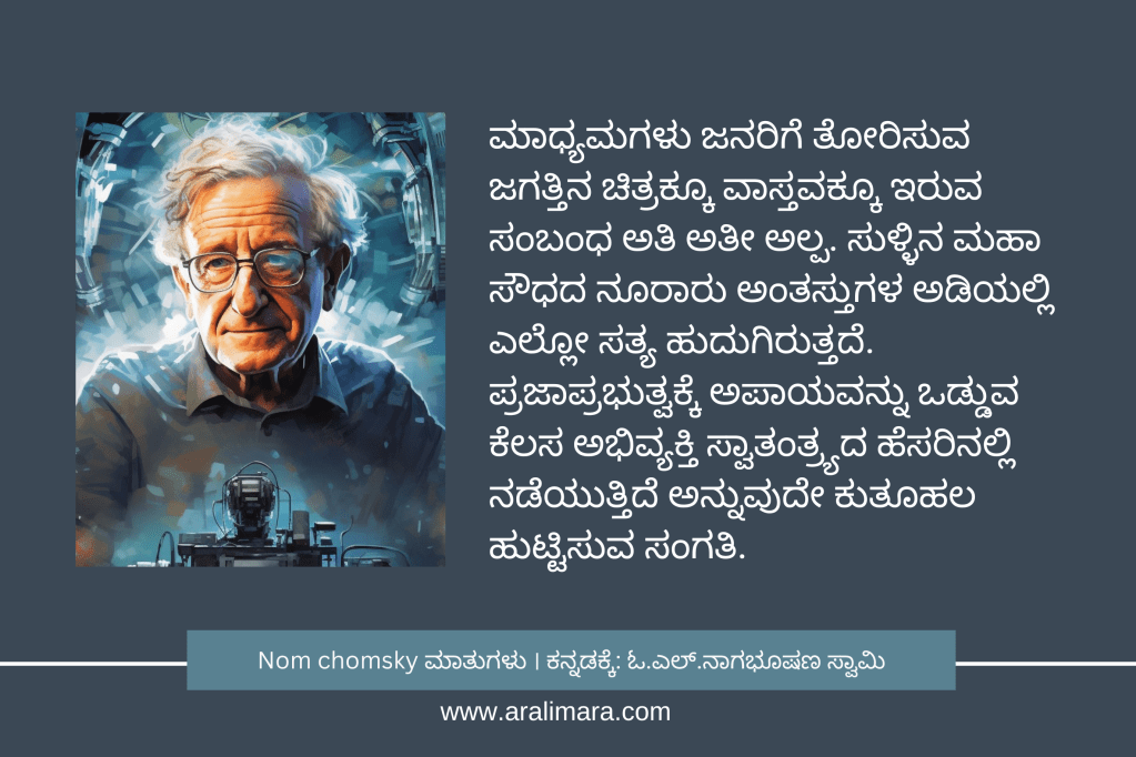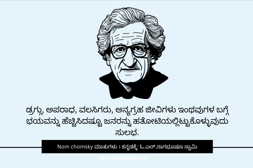 ನಾಮ್ ಚಾಮ್’ಸ್ಕಿ ಭಾಷಾಶಾಸ್ತ್ರ, ತತ್ತ್ವಶಾಸ್ತ್ರ ಮತ್ತು ಮನಃಶಾಸ್ತ್ರ ಕ್ಷೇತ್ರಗಳಲ್ಲಿ ವಿಶಿಷ್ಟ ಕೆಲಸ ಮಾಡಿರುವ ವಿದ್ವಾಂಸರು ಮತ್ತು ಈ ಶತಮಾನದ ಬಹುಮುಖ್ಯ ಚಿಂತಕರಲ್ಲಿ ಒಬ್ಬರು. ಇವರ ಕೆಲವು ಆಯ್ದ ಹೇಳಿಕೆಗಳನ್ನು ಓ.ಎಲ್.ನಾಗಭೂಷಣ ಸ್ವಾಮಿಯವರು ಕನ್ನಡಕ್ಕೆ ತಂದಿದ್ದು, ಅದರ 2ನೇ ಕಂತು ಇಲ್ಲಿದೆ…