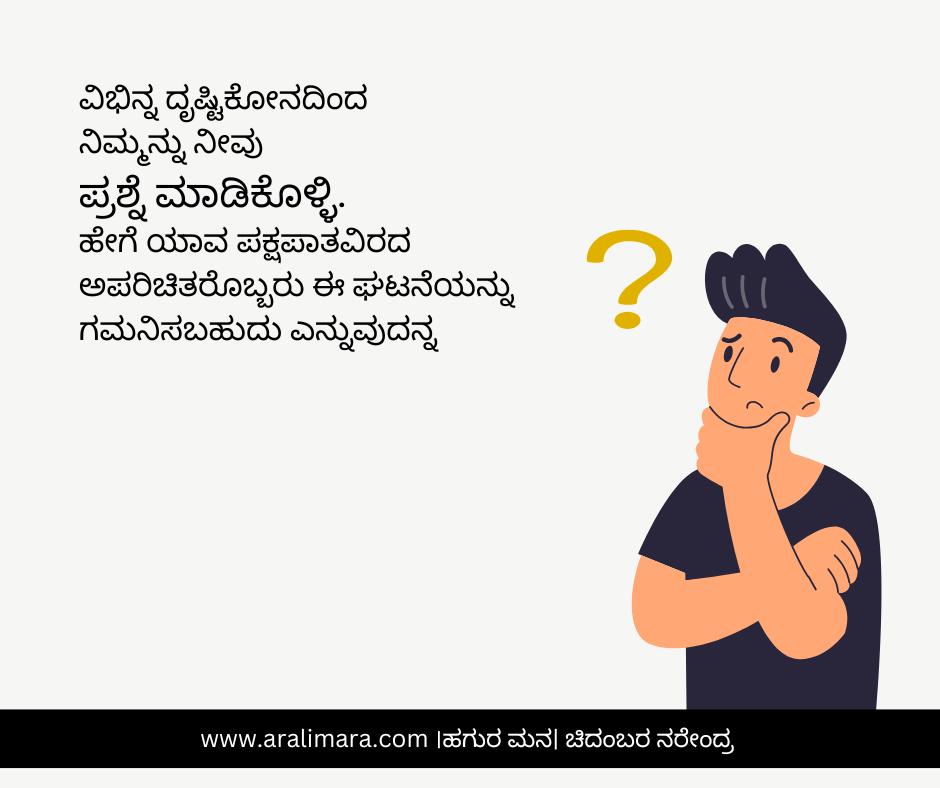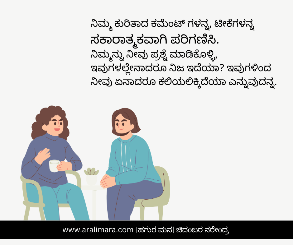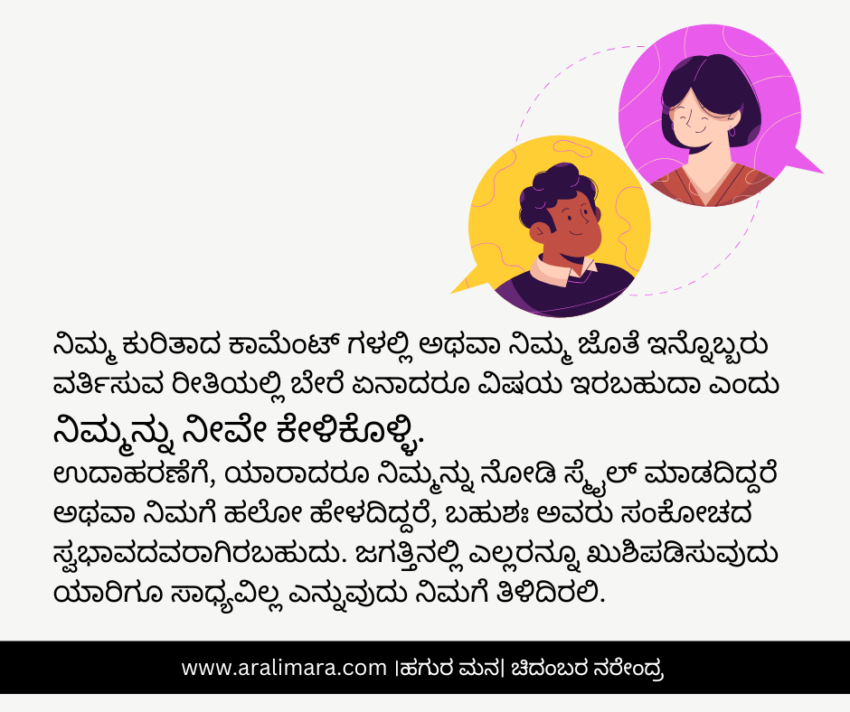 ಸಂಗತಿಗಳನ್ನ ಪರ್ಸನಲ್ ಆಗಿ ತೆಗೆದುಕೊಳ್ಳದಿರಲು 6 ಟಿಪ್ಸ್ ಜನವರಿ 5, 2025 By ಅರಳಿ ಮರ ಸಂಗ್ರಹಾನುವಾದ : ಚಿದಂಬರ ನರೇಂದ್ರ 1 2 3 4 5 6 Share this:Tweet Click to email a link to a friend (Opens in new window) Email Click to share on Telegram (Opens in new window) Telegram Click to share on WhatsApp (Opens in new window) WhatsApp ಇನ್ನಷ್ಟು Click to print (Opens in new window) Print Click to share on Reddit (Opens in new window) Reddit Share on TumblrLike ಲೋಡ್ ಆಗುತ್ತಿದೆ... Related About ಅರಳಿ ಮರ ಆಧ್ಯಾತ್ಮ, ವ್ಯಕ್ತಿತ್ವ ವಿಕಸನ ಮತ್ತು ಜೀವನ ಶೈಲಿ