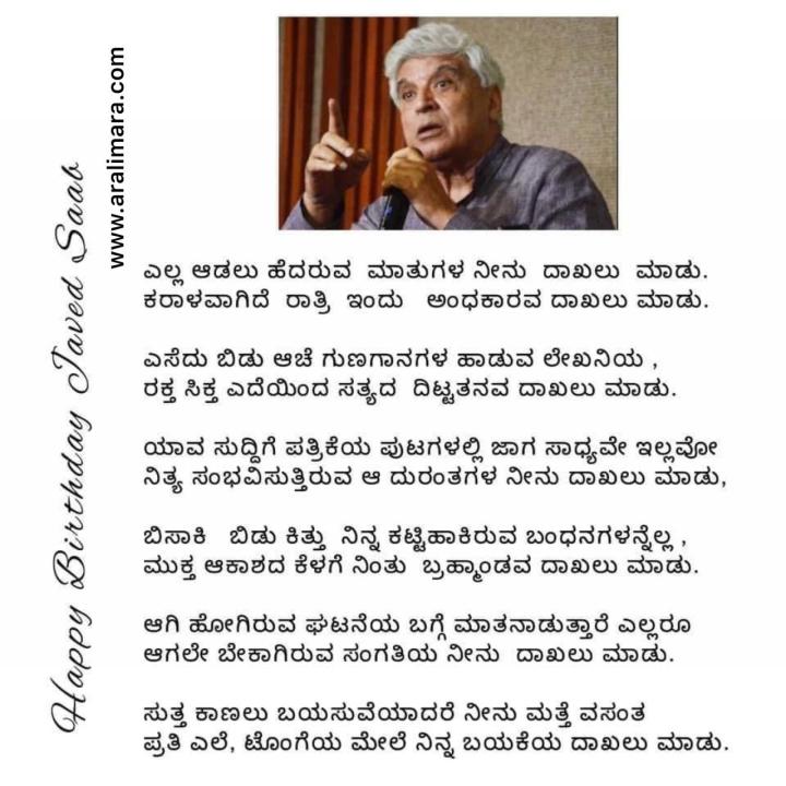 ಇಂದು ಕವಿ, ಚಲನಚಿತ್ರ ಗೀತರಚನೆಕಾರ, ಮಾನವೀಯ ಹೃದಯದ ಜಾವೇದ್ ಅಖ್ತರ್ ಜನ್ಮ ದಿನ. ಈ ಸಂದರ್ಭದಲ್ಲಿ ಕೆಲವು ಕಾವ್ಯಹನಿಗಳು ಇಲ್ಲಿವೆ… । ಸಂಗ್ರಹ – ಅನುವಾದ: ಚಿದಂಬರ ನರೇಂದ್ರ