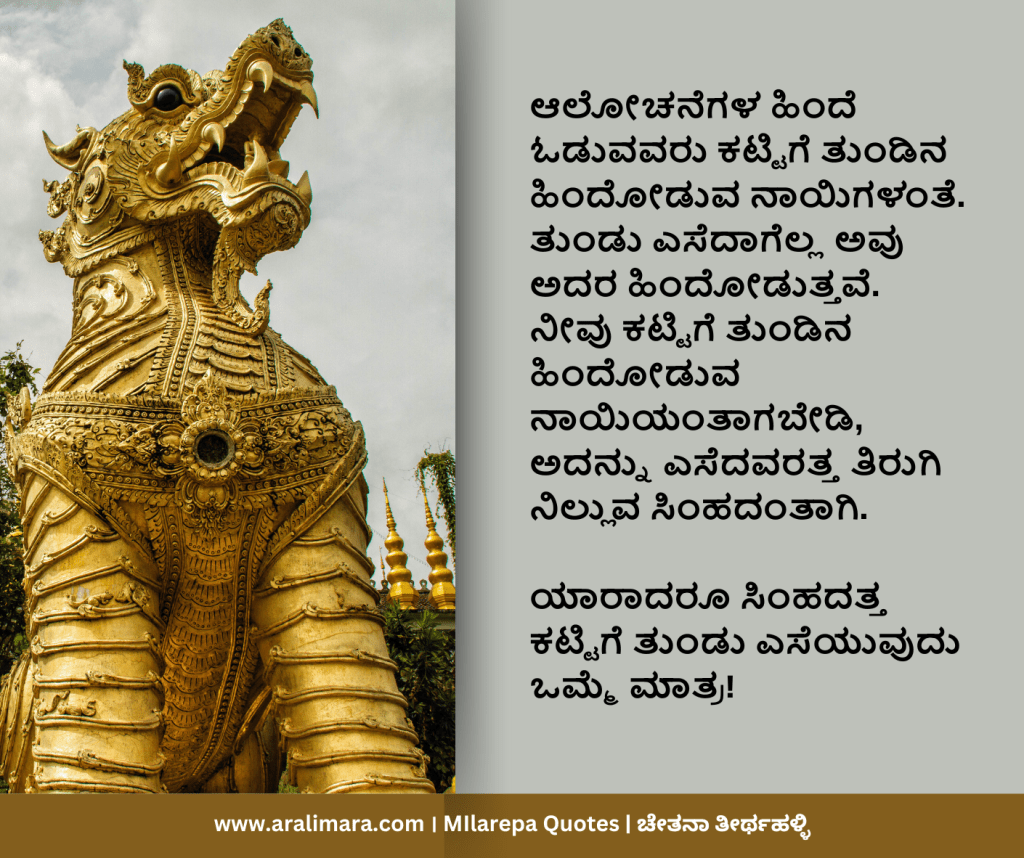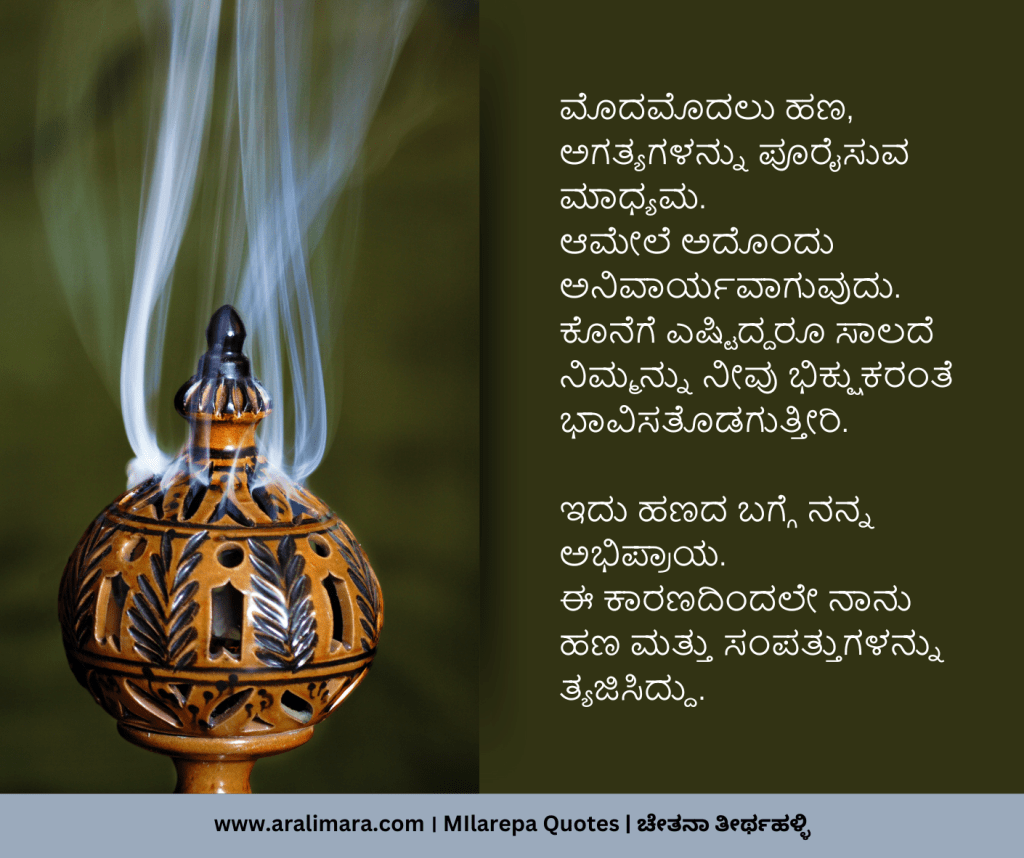 ಮಿಲರೇಪ, ಟಿಬೆಟ್ ನ ಸುಪ್ರಸಿದ್ಧ ಯೋಗಿ. ಶುರುವಲ್ಲಿ ಜಿದ್ದು ಸೇಡುಗಳಿಂದ ತುಂಬಿದ್ದ ಯುವಕನೊಬ್ಬ ಬುದ್ಧ ಮಾರ್ಗ ಹಿಡಿದು ಸಾಧಕನಾದ ಕತೆ ಇವನದ್ದು… । ಅನುವಾದ & ಪೋಸ್ಟರ್ಸ್: ಚೇತನಾ ತೀರ್ಥಹಳ್ಳಿ