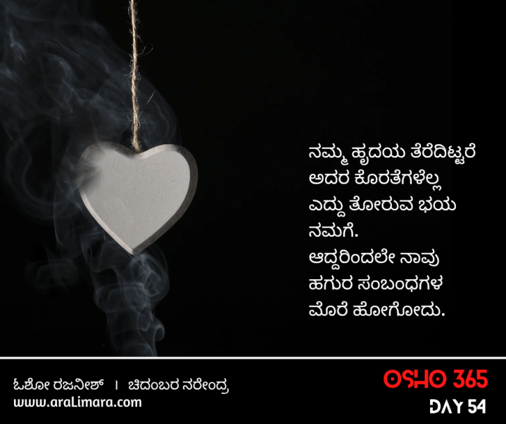 ನೀವು ಹೆಚ್ಚು ಹೆಚ್ಚು ನಿಮ್ಮ ಒಳಗಲ್ಲಿ ನೆಲೆಯಾಗುತ್ತಿದ್ದಂತೆಯೇ ಹೆಚ್ಚು ಹೆಚ್ಚು ನಿರಾಳತೆಯನ್ನು ಅನುಭವಿಸುತ್ತೀರಿ, ಸಂಬಂಧಗಳಲ್ಲಿ ಆಳವಾಗಿ ಪ್ರವೇಶಿಸುವ ಅವಕಾಶಗಳನ್ನು ಪಡೆದುಕೊಳ್ಳುತ್ತೀರಿ ~ ಓಶೋ ರಜನೀಶ್; ಕನ್ನಡಕ್ಕೆ: ಚಿದಂಬರ ನರೇಂದ್ರ