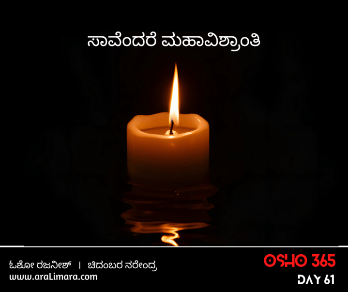 ಸಾವು ಎಂದರೆ ತಪ್ಪೇನೂ ಅಲ್ಲ. ಯಾವಾಗ ಸಾವು ಸಂಭವಿಸುತ್ತದೆಯೋ, ಆಗ ಅದು ಮಹಾ ವಿಶ್ರಾಂತಿ ~ ಓಶೋ ರಜನೀಶ್; ಕನ್ನಡಕ್ಕೆ: ಚಿದಂಬರ ನರೇಂದ್ರ