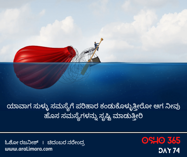 ಹಲವಾರು ಸಮಸ್ಯೆಗಳಿರುವ ಬಹಳಷ್ಟು ಜನರು ಇದ್ದಾರೆ ಆದರೆ ಅವರ ಸಮಸ್ಯೆಗಳು ವಾಸ್ತವವಲ್ಲ. 99% ಸಮಸ್ಯೆಗಳು ಸುಳ್ಳು. ಆದ್ದರಿಂದ ಈ ಸಮಸ್ಯೆಗಳ ಪರಿಹಾರವಾಗದಿದ್ದರೆ ನೀವು ತೊಂದರೆಯಲ್ಲಿರುವಿರಿ, ಮತ್ತು ಅವು ಪರಿಹಾರವಾದರೂ ಏನೂ ಬದಲಾಗುವುದಿಲ್ಲ. ಏಕೆಂದರೆ ಅವು ನಿಜದ ಸಮಸ್ಯೆಗಳಲ್ಲ. ಯಾವಾಗ ಸುಳ್ಳು ಸಮಸ್ಯೆಗೆ ಪರಿಹಾರ ಕಂಡುಕೊಳ್ಳುತ್ತೀರೋ ಆಗ ನೀವು ಹೊಸ ಸಮಸ್ಯೆಗಳನ್ನು ಸೃಷ್ಟಿ ಮಾಡುತ್ತೀರಿ. ಆದ್ದರಿಂದ ನಾವು ಮಾಡಬೇಕಾದ ಮೊದಲ ಸಂಗತಿಯೆಂದರೆ, ನಿಜದ ಸಮಸ್ಯೆಯ ಆಳವನ್ನು ಪ್ರವೇಶಿಸಿ ಅದು ಇರುವ ಹಾಗೆ ನೋಡುವುದು. ಸುಳ್ಳನ್ನು ಸುಳ್ಳು ಎಂದು ಗಮನಿಸುವುದು, ಸತ್ಯವನ್ನು ಸತ್ಯ ಎಂದು ನೋಡುವುದರ ಶುರುವಾತು.