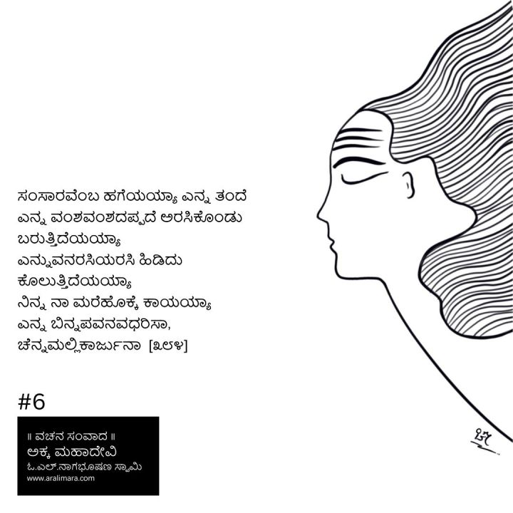 “ಸಂಸಾರವೆಂಬ ಶತ್ರು ನನ್ನ ವಂಶವನ್ನು ಹುಡುಕಿಕೊಂಡು ಬರುತ್ತಿದೆ. ನನ್ನವರನ್ನು ಹುಡುಕಿ ಹುಡುಕಿ ಕೊಲ್ಲುತ್ತಿದೆ. ನಾನು ನಿಮ್ಮ ರಕ್ಷಣೆಯನ್ನು ಬಯಸಿ ಮೊರೆ ಹೊಕ್ಕಿದ್ದೇನೆ. ನನ್ನ ಕೋರಿಕೆಯನ್ನು ದಯವಿಟ್ಟು ಆಲಿಸು” ಅನ್ನುತ್ತಿದ್ದಾಳೆ ಅಕ್ಕ ~ ಓ.ಎಲ್.ನಾಗಭೂಷಣ ಸ್ವಾಮಿ । ವಚನ ಸಂವಾದ : ಅಕ್ಕ ಮಹಾದೇವಿ : ಭಾಗ ೧ ಸಂದೇಹ, ಪ್ರಶ್ನೆ