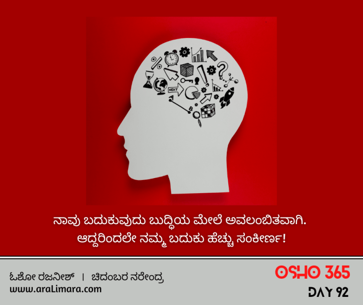 ನಾವು ಬದುಕುವುದು ಬುದ್ಧಿಯ ಮೇಲೆ ಅವಲಂಬಿತವಾಗಿ. ಆದ್ದರಿಂದಲೇ ನಮ್ಮ ಬದುಕು ಹೆಚ್ಚು ಹೆಚ್ಚು ಸಂಕೀರ್ಣ, ಹೆಚ್ಚು ಹೆಚ್ಚು jigsaw puzzle ನ ಹಾಗೆ : ಯಾವುದೂ ಸರಿಯಾಗಿ ಫಿಟ್ ಆಗುವುದಿಲ್ಲ. ನಾವು ಹೆಚ್ಚು ಜಾಣರಾಗಲು ಪ್ರಯತ್ನ ಮಾಡಿದಂತೆಲ್ಲ ಹೆಚ್ಚು ಹೆಚ್ಚು ಸಂದಿಗ್ಧ ಕ್ಕೆ ಸಿಕ್ಕಿ ಹಾಕಿಕೊಳ್ಳುತ್ತೇವೆ. ಇದು ನಮ್ಮ ಇತಿಹಾಸ : ನಾವು ಹೆಚ್ಚು ಹೆಚ್ಚು ಮೂರ್ಖತನದತ್ತ ಸಾಗಿದ್ದೇವೆ. ಈಗ ಇಡೀ ಜಗತ್ತು ಒಂದು ಹುಚ್ಚರ ಸಂತೆಯಾಗಿದೆ. ಈಗ ಸಮಯ ಸನ್ನಿಹಿತವಾಗಿದೆ, ಮಾನವತೆ ಬಾಳಿ ಬದುಕಬೇಕಾದರೆ , ಒಂದು ಮಹಾ ಬದಲಾವಣೆ ಸಂಭವಿಸಬೇಕಾದರೆ : ನಾವು ಬುದ್ಧಿಯಿಂದ ಹೃದಯ ಕಡೆ ಸಾಗಬೇಕು. ಇಲ್ಲವಾದರೆ ಬುದ್ಧಿ ಆತ್ಮಹತ್ಯೆಗೆ ಮುಂದಾಗುತ್ತದೆ. ಬುದ್ಧಿ ಎಷ್ಟು ಸಂಕಟ, ಎಷ್ಟು boredom, ಎಷ್ಟು ಸಮಸ್ಯೆಗಳನ್ನು ಸೃಷ್ಟಿ ಮಾಡಿಕೊಂಡಿದೆಯೆಂದರೆ, ಅದಕ್ಕೆ ಈಗ ಆತ್ಮಹತ್ಯೆಯಯ ಹೊರತು ಬೇರೆ ದಾರಿ ಇಲ್ಲ. ಇಡೀ ಜಗತ್ತು ಆತ್ಮಹತ್ಯೆಗೆ ಸಿದ್ಧವಾಗುತ್ತಿದೆ. ಏನಾದರೂ ಪವಾಡ ಸಂಭವಿಸದಿದ್ದರೆ, ಜಾಗತಿಕ ಆತ್ಮಹತ್ಯೆ ಖಚಿತ.