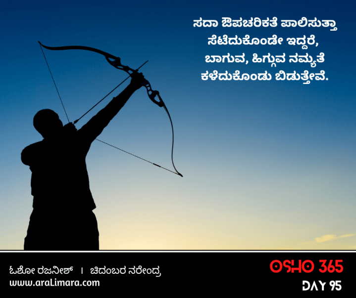 ಕೆಲವು ಸಂದರ್ಭಗಳಲ್ಲಿಯಾದರೂ ಜನ ರಿಲ್ಯಾಕ್ಸ್ ಆಗಿ ಇರಬೇಕು, ಎಷ್ಟು ರಿಲ್ಯಾಕ್ಸ್ ಆಗಿ ಇರಬೇಕೆಂದರೆ ಅವರಿಗೆ ಯಾವ ಔಪಚಾರಿಕತೆಯನ್ನು ಪಾಲಿಸುವ ಒತ್ತಡವೂ ಇರಬಾರದು ~ ಓಶೋ ರಜನೀಶ್, ಕನ್ನಡಕ್ಕೆ: ಚಿದಂಬರ ನರೇಂದ್ರ