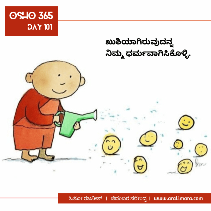 ಪ್ರತಿಯೊಬ್ಬರೂ ಪಾಲಿಸಲೇ ಬೇಕಾದಂಥ ಅತ್ಯಂತ ಮುಖ್ಯವಾದ ಕರ್ತವ್ಯವೆಂದರೆ ಖುಶಿಯಾಗಿರುವುದು ~ ಓಶೋ ರಜನೀಶ್, ಕನ್ನಡಕ್ಕೆ ಚಿದಂಬರ ನರೇಂದ್ರ