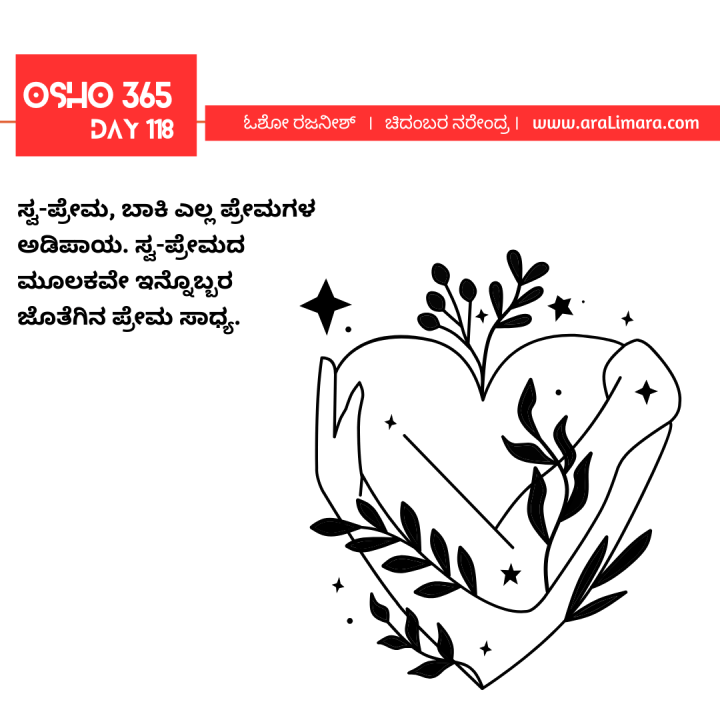 ನಮ್ಮನ್ನು ಖಂಡನೆ ಮಾಡಿಕೊಳ್ಳುವುದನ್ನ ನಮಗೆ ಮೊದಲಿನಿಂದಲೂ ಕಲಿಸಲಾಗಿದೆ. ಸ್ವ-ಪ್ರೇಮವನ್ನು ಪಾಪವೆಂದೇ ನಮ್ಮ ತಲೆಯಲ್ಲಿ ತುಂಬಲಾಗಿದೆ. ಆದರೆ ಇದು ತಪ್ಪು. ಸ್ವ-ಪ್ರೇಮ, ಬಾಕಿ ಎಲ್ಲ ಪ್ರೇಮಗಳ ಅಡಿಪಾಯ. ಸ್ವ-ಪ್ರೇಮದ ಮೂಲಕವೇ ಇನ್ನೊಬ್ಬರ ಜೊತೆಗಿನ ಪ್ರೇಮ ಸಾಧ್ಯ. ಸ್ವ-ಪ್ರೇಮವನ್ನು ಪಾಪವೆಂದು ಖಂಡಿಸಲಾಗಿರುವುದರಿಂದ, ಪ್ರೇಮದ ಬಾಕಿ ಎಲ್ಲ ಸಾಧ್ಯತೆಗಳು ಭೂಮಿಯಿಂದ ಕಣ್ಮರೆಯಾಗಿವೆ. ಪ್ರೇಮವನ್ನು ನಾಶಮಾಡಲು ಬಳಸಲಾಗಿರುವ ಅತ್ಯಂತ ಕಪಟಿ ತಂತ್ರ ಇದು. ಇದು ಹೇಗೆಂದರೆ, “ ಭೂಮಿಯ ಫಲವತ್ತತೆಯಿಂದ ನಿನ್ನನ್ನು ನೀನು ಪೋಷಿಸಿಕೊಳ್ಳಬೇಡ, ಇದು ಪಾಪ. ಸೂರ್ಯ, ಚಂದ್ರ, ನಕ್ಷತ್ರಗಳಿಂದ ನಿನ್ನನ್ನು ನೀನು ಪೋಷಿಸಿಕೊಳ್ಳಬೇಡ, ಇದು ಸ್ವಾರ್ಥ. ಪರೋಪಕಾರಿಯಾಗು ಬೇರೆ ಮರಗಳನ್ನು ಪೋಷಿಸು” ಎಂದು ಮರಕ್ಕೆ ಹೇಳಿದಂತೆ. ಇದು ಏನೋ ತರ್ಕಬದ್ಧ ಅನಿಸಬಹುದು ಆದರೆ ಮಹಾ ಅಪಾಯಕಾರಿ. ಇನ್ನೊಬ್ಬರನ್ನು ಸಲಹುವುದು ತ್ಯಾಗ ನಿಜ, ಆದರೆ ಮರ ತನ್ನನ್ನು ತಾನು ಪೋಷಿಸುಕೊಳ್ಳದೇ ಹೋದರೆ ಅದು ಹೇಗೆ ತಾನೆ ಇನ್ನೊಂದು ಮರವನ್ನು ಸಲಹಬಹುದು? ಇನ್ನೊಂದನ್ನು ಪೋಷಿಸುವ ಮೊದಲು ಅದು ತಾನು ಬದುಕಬೇಕಲ್ಲವೆ?