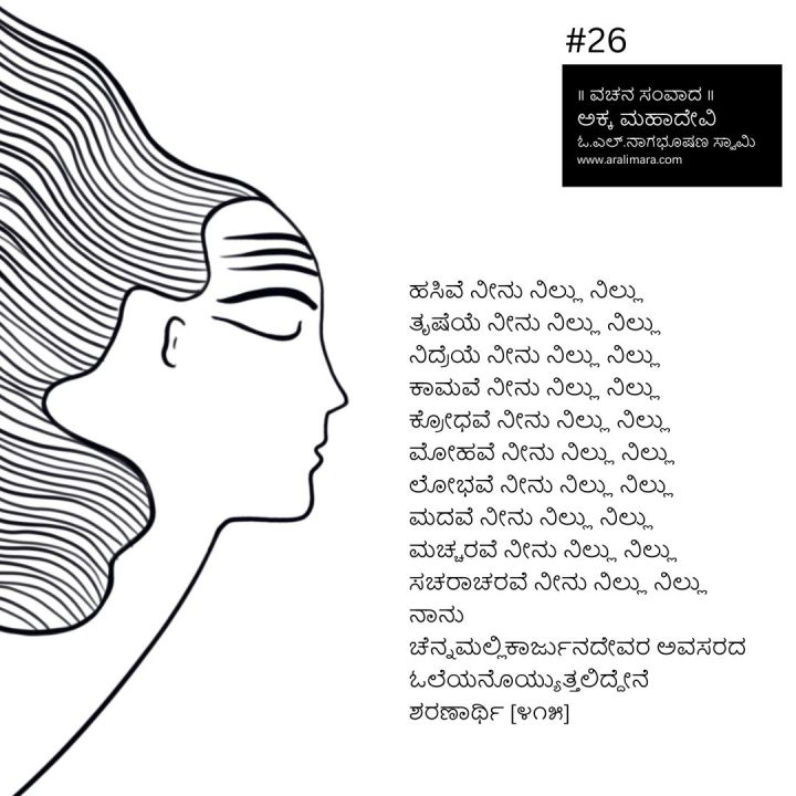 ಅಂತಿಂಥವರಿಗಲ್ಲ, ಚೆನ್ನಮಲ್ಲಿಕಾರ್ಜುನನಿಗೆ ಓಲೆಯನ್ನು ತಲುಪಿಸಲು ಹೋಗುತ್ತಿದ್ದೇನೆ. ಯಾರೂ ಅಡ್ಡಬರಬೇಡಿ ಎಂಬ ಕೋರಿಕೆ ಇಲ್ಲಿದೆ… ~ ಓ.ಎಲ್.ನಾಗಭೂಷಣ ಸ್ವಾಮಿ । ವಚನ ಸಂವಾದ : ಅಕ್ಕ ಮಹಾದೇವಿ : ಭಾಗ 2, ವಿಶ್ವಾಸ