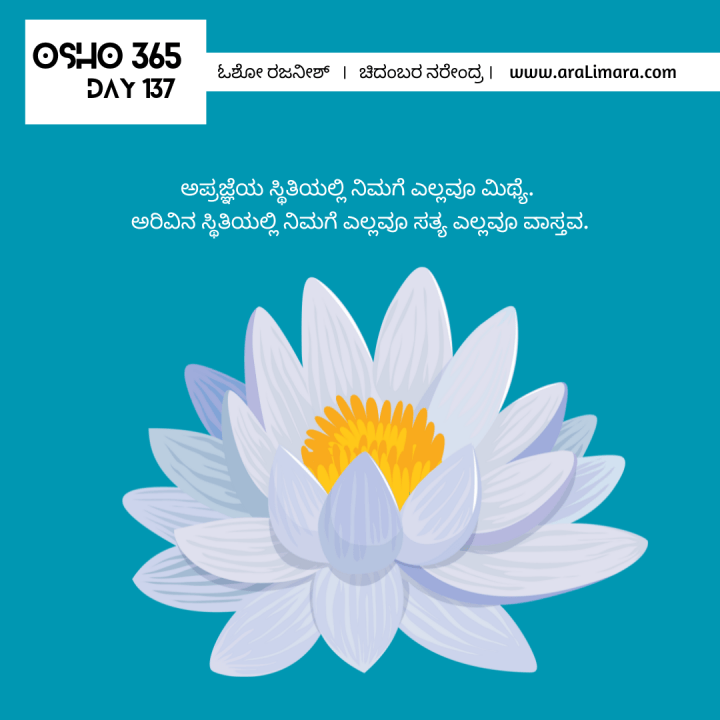 ನಿಮ್ಮ ಇನ್ನೊಂದು ಸ್ಥಿತಿಯಲ್ಲಿ, ನಿಮ್ಮೊಳಗೆ ಅರಿವು ಹುಟ್ಟಿಕೊಂಡಂಥ ಸ್ಥಿತಿಯಲ್ಲಿ, ನೀವು ಬುದ್ಧ ಆಗಿರುವ ಸ್ಥಿತಿಯಲ್ಲಿ, ಎಲ್ಲವೂ ನಿಮಗೆ ನೈಜ, ಎಲ್ಲವೂ ವಾಸ್ತವ, ಯಾವುದು ಮಿಥ್ಯೆಯಲ್ಲ. ಆದ್ದರಿಂದ ಕೆಲವು ಸಂಗತಿಗಳು ನಿಜ, ಕೆಲವು ನಿಜವಲ್ಲ ಎನ್ನುವ ಮಾತು ಸರಿಯಲ್ಲ. ಅಪ್ರಜ್ಞೆಯ ಸ್ಥಿತಿಯಲ್ಲಿ ನಿಮಗೆ ಎಲ್ಲವೂ ಮಿಥ್ಯೆ. ಅರಿವಿನ ಸ್ಥಿತಿಯಲ್ಲಿ ನಿಮಗೆ ಎಲ್ಲವೂ ಸತ್ಯ ಎಲ್ಲವೂ ವಾಸ್ತವ. ಆದರೆ ಪ್ರಜ್ಞೆಯ ಸ್ಥಿತಿಯಲ್ಲಿ ಮಾತ್ರ ಯಾವುದು ಮಿಥ್ಯೆ ಎನ್ನುವುದನ್ನ ನಿಮಗೆ ಕಂಡುಕೊಳ್ಳುವುದು ಸಾಧ್ಯ, ಅದಕ್ಕಿಂತ ಮೊದಲು ಅಲ್ಲ.