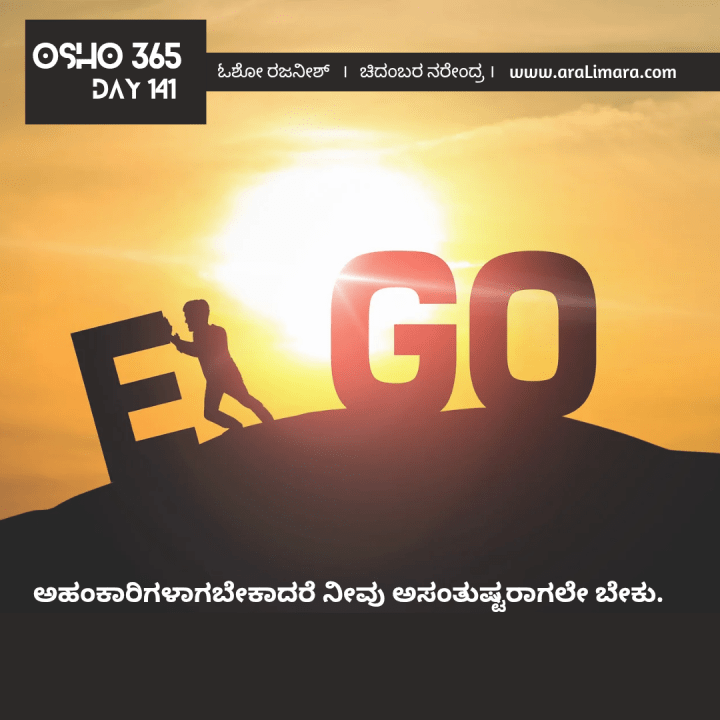ಅಹಂಕಾರಿಗಳಾಗಬೇಕಾದರೆ ನೀವು ಅಸಂತುಷ್ಟರಾಗಲೇ ಬೇಕು. ಅಸಂತೋಷ ನಿಮಗೆ ಹಿನ್ನೆಲೆಯನ್ನು ದಯಪಾಲಿಸುತ್ತದೆ ಮತ್ತು ನಿಮ್ಮ ಅಹಂ ಬಿಳಿ ಹಿನ್ನೆಲೆಯ ಮೇಲಿನ ಕಪ್ಪು ಚುಕ್ಕೆಯಂತೆ ಸ್ಪಷ್ಟವಾಗಿ ಕಾಣಿಸಿಕೊಳ್ಳುತ್ತದೆ. ನೀವು ಹೆಚ್ಚು ಖುಶಿಯಾಗಿದ್ದಾಗ, ಕಡಿಮೆ ನೀವಾಗಿರುತ್ತೀರಿ. ಆದ್ದರಿಂದಲೇ ಬಹಳಷ್ಟು ಜನ