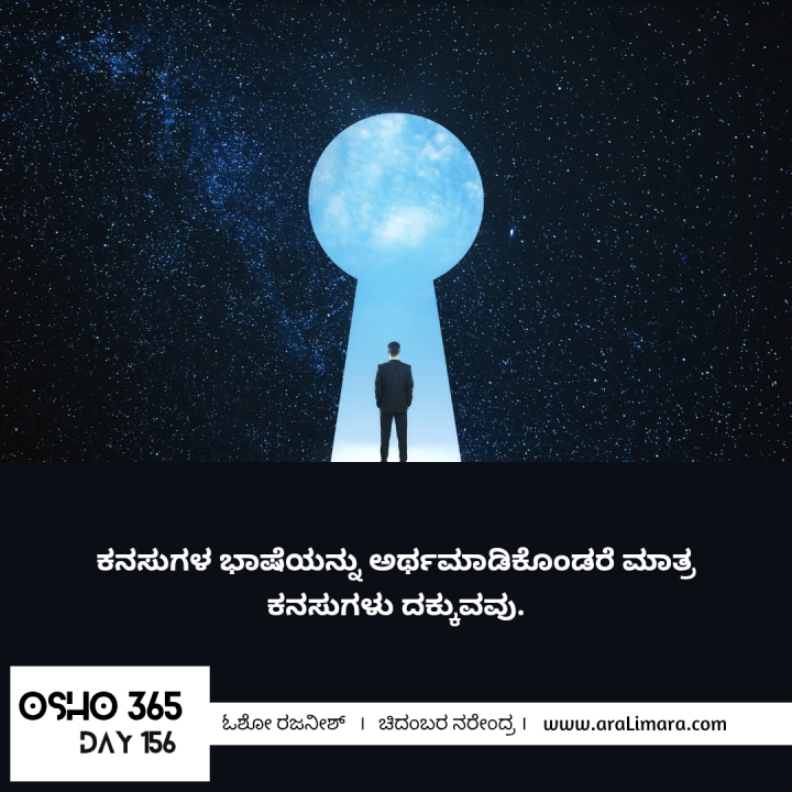 ಕನಸುಗಳ ಜೊತೆ ಗೆಳೆತನ ಮಾಡಿಕೊಳ್ಳುವುದನ್ನ ಕಲಿಯಿರಿ. ಕನಸುಗಳು, ನಿಮ್ಮ ಸುಪ್ತಪ್ರಜ್ಞೆ ನಿಮ್ಮ ಜೊತೆ ಮಾಡಬಯಸುತ್ತಿರುವ ಸಂಹವನ. ನಿಮ್ಮ ಸುಪ್ತಪ್ರಜ್ಞೆಯಿಂದ ನಿಮಗೆ ಸೂಚನೆ ಇದೆ. ಅದು ನಿಮ್ಮ ಮತ್ತು ನಿಮ್ಮ ಪ್ರಜ್ಞೆಯ ನಡುವೆ ಸೇತುವೆಯನ್ನು ಕಟ್ಟ ಬಯಸುತ್ತಿದೆ ~ ಓಶೋ ರಜನೀಶ್; ಕನ್ನಡಕ್ಕೆ: ಚಿದಂಬರ ನರೇಂದ್ರ