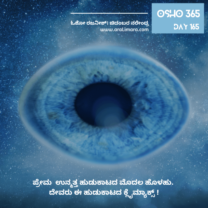 ಪ್ರೇಮ ಉನ್ಮತ್ತವಾದದ್ದು, ಮತ್ತು ಅದನ್ನು ಒಗ್ಗಿಸಿಕೊಳ್ಳಲು ಪ್ರಯತ್ನಿಸಿದ ಕ್ಷಣದಲ್ಲಿಯೇ ಅದು ನಾಶವಾಗಿಬಿಡುತ್ತದೆ. ಪ್ರೇಮ, ಸ್ವಾತಂತ್ರ್ಯದ, ಉನ್ಮತತ್ತೆಯ, ಸಹಜತೆಯ ಚಂಡಮಾರುತ ~ ಓಶೋ ರಜನೀಶ್; ಕನ್ನಡಕ್ಕೆ: ಚಿದಂಬರ ನರೇಂದ್ರ
