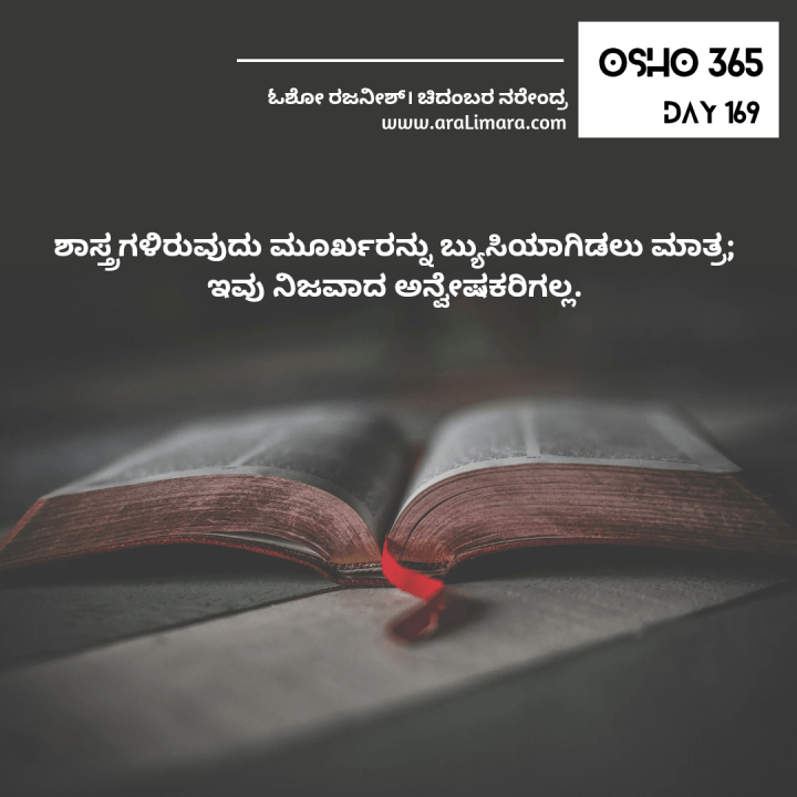 ಹಲವಾರು ಶಾಸ್ತ್ರಗಳಿವೆ ಮತ್ತು ಇನ್ನೂ ಮಹತ್ವದ ಫಿಲಾಸಫಿಗಳಿವೆ, ಆದರೆ ಇವೆಲ್ಲ ವ್ಯರ್ಥ ! ಇವು ಮೂರ್ಖರನ್ನು ಬ್ಯುಸಿ ಆಗಿ ಇಡಲು ಮಾತ್ರ. ಇವು ನಿಜವಾದ ಅನ್ವೇಷಕರಿಗೆ ಅಲ್ಲ ~ ಓಶೋ ರಜನೀಶ್; ಕನ್ನಡಕ್ಕೆ: ಚಿದಂಬರ ನರೇಂದ್ರ