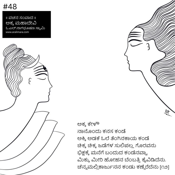 ಅಕ್ಕಾ, ನನಗೊಂದು ಕನಸು. ೧. ಅದರಲ್ಲಿ ಅಕ್ಕಿ, ಅಡಕೆ, ಓಲೆ, ತೆಂಗಿನ ಕಾಯಿ ಕಂಡೆ, ೨. ಚಿಕ್ಕ ಚಿಕ್ಕ ಜಡೆಗಳ, ಬಿಳಿಯ ಸ್ವಚ್ಛ ಹಲ್ಲಿನ ಗೊರವ ಭಿಕ್ಷಕ್ಕೆ ಮನೆಗೆ ಬಂದಿದ್ದ. ೩. ಅವನು ಅತಿರೇಕದಿಂದ ವರ್ತಿಸಿದ. ೪.ಅವನನ್ನು ಅಟ್ಟಿಕೊಂಡು ಹೋಗಿ ಕೈ ಹಿಡಿದೆ. ೪.ಅವನು ಚೆನ್ನಮಲ್ಲಿಕಾರ್ಜುನ. ಅವನನ್ನು ಕಂಡು ಕಣ್ಣು ತೆರೆದೆ