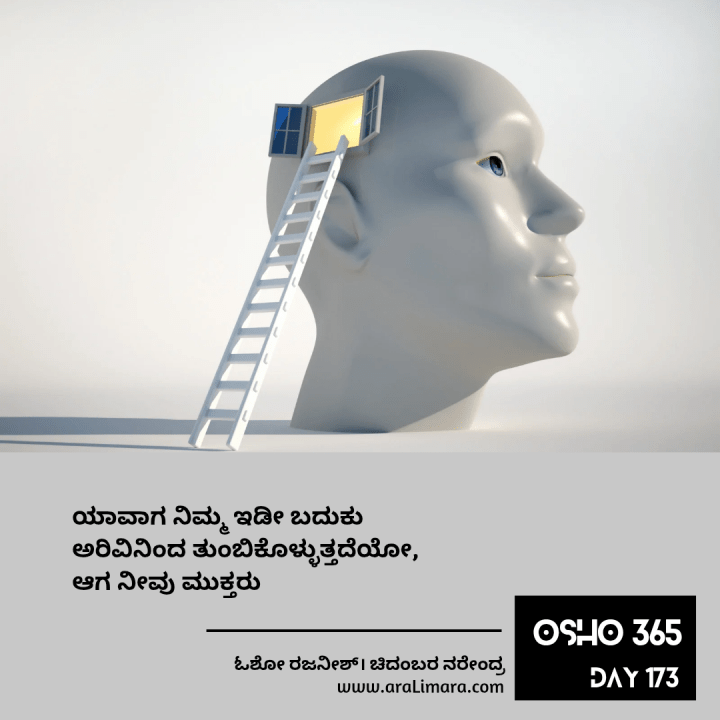 ಯಾವಾಗ ನಿಮ್ಮ ಇಡೀ ಬದುಕು ಈ ಅರಿವಿನಿಂದ ತುಂಬಿಕೊಳ್ಳುತ್ತದೆಯೋ, ಆಗ ನೀವು ಮುಕ್ತರು, ಆಗ ಯಾವುದೂ ನಿಮ್ಮನ್ನು ಕಟ್ಟಿಹಾಕುವುದಿಲ್ಲ, ಯಾವುದೂ ನಿಮ್ಮನ್ನು ಬಂಧಿಸುವುದಿಲ್ಲ. ನೀವು ಮುಖವಾಡಗಳನ್ನು ಬಳಸುತ್ತೀರಿ ಆದರೆ, ಅವು ನಿಮ್ಮ ನಿಜ ಮುಖವಲ್ಲ ಎನ್ನುವುದು ನಿಮಗೆ ಗೊತ್ತು. ಈ ಮುಖವಾಡವನ್ನು ನೀವು ತೆಗೆಯಬಹುದು ಏಕೆಂದರೆ ನಿಮಗೆ ಗೊತ್ತು ಈ ಮುಖವಾಡ ಯಾಕಾಗಿಯೆಂದು. ನಿಮಗೆ ನಿಮ್ಮ ಓರಿಜಿನಲ್ ಮುಖವೂ ಗೊತ್ತು. ಯಾರಿಗೆ ಬದುಕು ಆಟ ಎನ್ನುವುದು ಗೊತ್ತೋ ಅವರಿಗೆ ನೈಜ ಮುಖದ ಪರಿಚಯವೂ ಉಂಟು. ನೈಜ ಮುಖ ಗೊತ್ತಾಗುವುದೆಂದರೆ, ಗೊತ್ತಾಗಬೇಕಾದದ್ದನ್ನ ಗೊತ್ತು ಮಾಡಿಕೊಳ್ಳುವುದು.