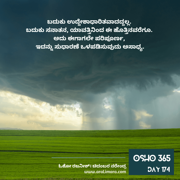 ಪ್ರತಿಯೊಂದೂ ನಿರರ್ಥಕವೇ. ಇದನ್ನು ಗ್ರಹಿಸಬೇಕಾದದ್ದು ಬಹಳ ಮುಖ್ಯ, ಇಲ್ಲವಾದರೆ ಭ್ರಮೆಯಲ್ಲಿಯೇ ಬದುಕಬೇಕಾಗುತ್ತದೆ. ಪ್ರತಿಯೊಂದೂ ವ್ಯರ್ಥವೇ, ಬದುಕಿನಲ್ಲಿ ಯಾವ ಬೆಳವಣಿಗೆ ಇಲ್ಲ, ಯಾವ ಸುಧಾರಣೆ ಇಲ್ಲ, ಏಕೆಂದರೆ ಬದುಕು ಸನಾತನ. ಬದುಕು ಈಗಾಗಲೇ ಪರಿಪೂರ್ಣ ~ ಓಶೋ ರಜನೀಶ್; ಕನ್ನಡಕ್ಕೆ: ಚಿದಂಬರ ನರೇಂದ್ರ