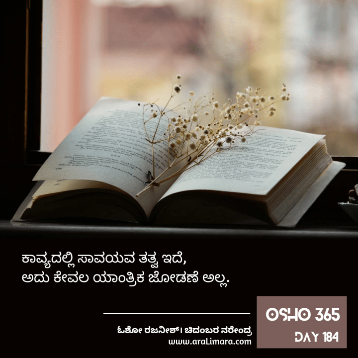 ಭಗವಂತ ಒಬ್ಬ ಡಾನ್ಸರ್. ಅವನು ಜಗತ್ತನ್ನು ಪೇಂಟ್ ಮಾಡಿಲ್ಲ, ಹಾಗೇನಾದರೂ ಆಗಿದ್ದರೆ ಅವನು ಜಗತ್ತಿನಿಂದ ಹೊರತಾಗಿಬಿಡುತ್ತಿದ್ದ. ಜಗತ್ತು ಅವನ ಕಾವ್ಯ ಅಲ್ಲ, ಅವನ ಸಂಗೀತ ಅಲ್ಲ. ಎಕೆಂದರೆ ಅವನು ಜಗತ್ತಿನೊಳಗಿದ್ದಾನೆ, ಅವನೇ ಜಗತ್ತು ಆಗಿದ್ದಾನೆ . In this very moment, ಈ ಹಸಿರು ಮರಗಳು, ಮತ್ತು ತನ್ನ ಬಂಗಾರದ ಕಿರಣಗಳನ್ನು ಅವುಗಳ ಮೂಲಕ ಹಾಯಿಸುತ್ತಿರುವ ಸೂರ್ಯ, ಮತ್ತು ಹಕ್ಕಿಯ ಕುಹೂ, ಮತ್ತು ನೀನು ಮೌನದಲ್ಲಿ ಕುಳಿತಿರುವುದು, ನನ್ನ ಜೊತೆ ಯಾವ ಕಾರಣವಿಲ್ಲದೆ ಒಂದಾಗಿರುವುದು, ಈ ಕ್ಷಣವನ್ನು ಆಸ್ವಾದಿಸುತ್ತ, ಆನಂದಿಸುತ್ತ. This is it.