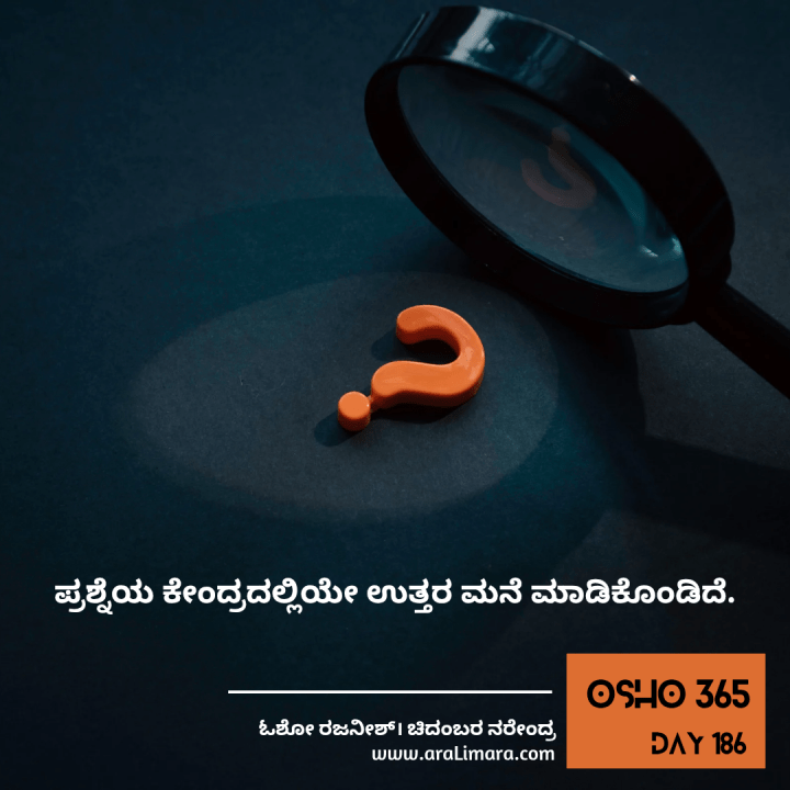 ಮತ್ತು ಇಂಥ ಸ್ಥಿತಿಯ ಚೆಲುವು ಏನೆಂದರೆ ನಿಮ್ಮ ಬಳಿ ಕೇವಲ ನಿಜದ ಪ್ರಶ್ನೆಗಳಿದ್ದಾಗ, ಉತ್ತರ ನಿಮ್ಮಿಂದ ಬಹಳ ದೂರ ಇಲ್ಲ, ಅದು ನಿಮ್ಮ ಪ್ರಶ್ನೆಯಲ್ಲಿಯೇ ಇದೆ. ಪ್ರಶ್ನೆಯ ಕೇಂದ್ರದಲ್ಲಿಯೇ ಉತ್ತರ ಮನೆ ಮಾಡಿಕೊಂಡಿದೆ.