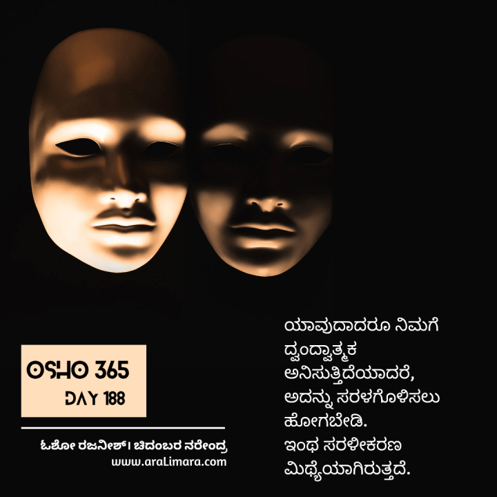 ಆದ್ದರಿಂದ ನಿಮಗೆ ಸದಾ ನೆನಪಿರಲಿ : ಯಾವುದಾದರೂ ನಿಮಗೆ ದ್ವಂದ್ವಾತ್ಮಕ ಅನಿಸುತ್ತಿದೆಯಾದರೆ, ಅದನ್ನು ಸರಳಗೊಳಿಸಲು ಹೋಗಬೇಡಿ, ಏಕೆಂದರೆ ಇಂಥ ಸರಳೀಕರಣ ಮಿಥ್ಯೆಯಾಗಿರುತ್ತದೆ. ವಾಸ್ತವ ಯಾವತ್ತೂ ದ್ವಂದ್ವಾತ್ಮಕ : ಒಂದು ಕಡೆ ನೀವು vulnerable ಆಗಿದ್ದರೆ ಇನ್ನೊಂದು ಕಡೆ strong ಫೀಲ್ ಮಾಡಿಕೊಳ್ಳುತ್ತಿದ್ದೀರಿ, ಹಾಗೆಂದರೆ ಸತ್ಯದ ಗಳಿಗೆ ನಿಮ್ಮ ಎದುರುಗಿದೆ. ಒಂದು ಕಡೆ ನಿಮಗೆ ಏನೂ ಗೊತ್ತಿಲ್ಲ ಅನಿಸುತ್ತಿದ್ದರೆ, ಇನ್ನೊಂದು ಕಡೆ ನಿಮಗೆ ಎಲ್ಲವೂ ಗೊತ್ತು ಅನಿಸುತ್ತಿದೆ – ಆಗ ಸತ್ಯ ನಿಮ್ಮ ಎದುರಿಗಿದೆ.