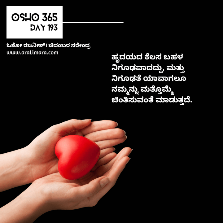 ನಾವು ಹೃದಯಗಳ ಮೂಲಕ ಹೋಗದೇ ಅದನ್ನು ಬೈಪಾಸ್ ಮಾಡಿ ತಲೆಯನ್ನು ತಲುಪಿದ್ದೇವೆ. ನಾವು ಶಾರ್ಟಕಟ್ ದಾರಿಯನ್ನು ಬಳಸಿದ್ದೇವೆ. ಹೃದಯವನ್ನು ನಿರ್ಲಕ್ಷ ಮಾಡಿದ್ದೇವೆ, ನಿರಾಕರಿಸಿದ್ದೇವೆ – ಏಕೆಂದರೆ ಹೃದಯ ಎನ್ನುವುದು ಬಹಳ ಅಪಾಯಕಾರಿಯಾದ ವಿದ್ಯಮಾನ~ ಓಶೋ ರಜನೀಶ್; ಕನ್ನಡಕ್ಕೆ: ಚಿದಂಬರ ನರೇಂದ್ರ