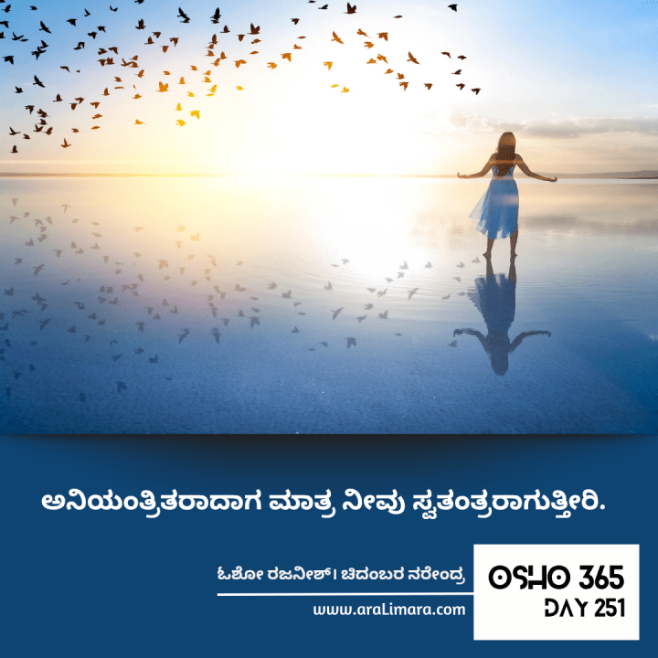 ಯಾವುದರಲ್ಲೂ ನಿಯಂತ್ರಣವನ್ನು ದಾಟಬಾರದು ಎನ್ನುವುದನ್ನ ನಮಗೆ ಮೊದಲಿನಿಂದಲೂ ಹೇಳಿಕೊಡಲಾಗಿದೆ, ಅದು ನಗು, ಅಳು, ಪ್ರೇಮ, ಕೋಪ, ಯಾವುದೂ ಆಗಬಹುದು, ಯಾವುದರಲ್ಲೂ ನಾವು ಮಿತಿಯನ್ನು ಮೀರಿ ಹೋಗಬಾರದು ~ ಓಶೋ ರಜನೀಶ್; ಕನ್ನಡಕ್ಕೆ ಚಿದಂಬರ ನರೇಂದ್ರ