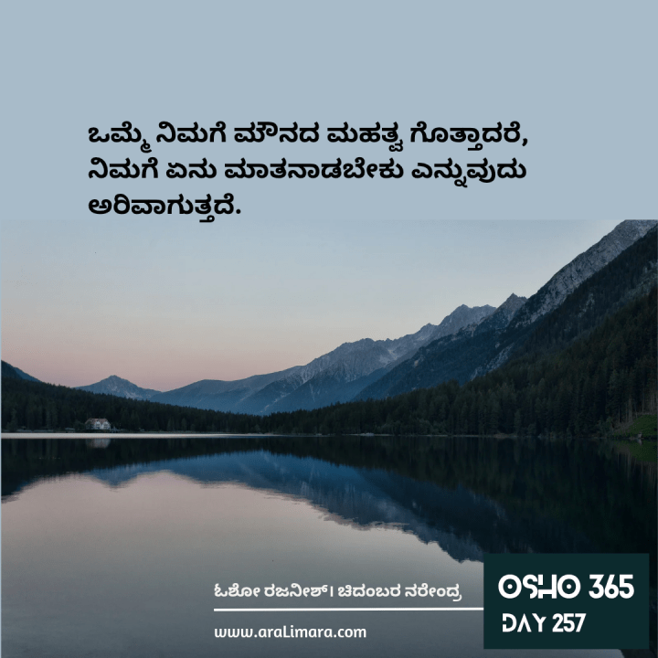 ಒಮ್ಮೆ ನೀವು ಮೌನದ ಆಳವನ್ನು ತಲುಪುವಿರಾದರೆ, ಆಗ ಮೊದಲ ಬಾರಿಗೆ ನಿಮ್ಮ ಮಾತುಗಳು ಅರ್ಥವನ್ನು ಕ್ಯಾರಿ ಮಾಡಲು ಶುರು ಮಾಡುತ್ತವೆ. ಆಗ ಅವು ಕೇವಲ ಖಾಲೀ ಮಾತುಗಳಲ್ಲ, ಅವು ಏನೋ ಒಂದು ಮೀರುವಿಕೆಯಿಂದ ತುಂಬಿಕೊಂಡಿವೆ. ಆಗ ಆ ಮಾತುಗಳಲ್ಲಿ ಕಾವ್ಯ ಇದೆ, ನೃತ್ಯ ಇದೆ. ಆಗ ನಿಮ್ಮ ಮಾತುಗಳು ನಿಮ್ಮ ಒಳ ಘನತೆಯನ್ನು ಹೊತ್ತು ಮುಂದುವರೆಯುತ್ತವೆ.