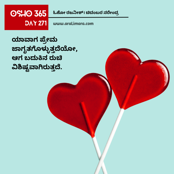 ಮತ್ತು ನಮ್ಮ ಒಳಗಿನ ಸಂಪತ್ತು ಎಂದಿನಿಂದಲೂ ನಮ್ಮ ಬಳಿಯೇ ಇದೆ. ಅದ್ದರಿಂದ ಅದನ್ನು ಇಗ್ನೋರ್ ಮಾಡುವುದು ಬಹಳ ಸುಲಭ; ಹಾಗೆ ಅದನ್ನು ನಿರ್ಲಕ್ಷಿಸುವುದನ್ನ ನಾವು ರೂಢಿ ಮಾಡಿಕೊಂಡು ಬಿಟ್ಟಿದ್ದೇವೆ. ಅಜ್ಞಾನ ಎನ್ನುವ ಪದದ ಅರ್ಥ ಇದು. ಆದ್ದರಿಂದ ನಮ್ಮ ಹುಡುಕಾಟ ಇರುವುದನ್ನ ನಿರ್ಲಕ್ಷಿಸದೇ ಇರುವುದರಿಂದ ಶುರುವಾಗಬೇಕು. ಆಗ ಜಾಗೃತಿ ತಾನೇ ತಾನಾಗಿ ಹುಟ್ಟಿಕೊಳ್ಳುತ್ತದೆ. ಯಾವಾಗ ಪ್ರೇಮ ಜಾಗೃತಗೊಳ್ಳುತ್ತದೆಯೋ, ಆಗ ಬದುಕಿನ ರುಚಿ ವಿಶಿಷ್ಟವಾಗಿರುತ್ತದೆ. ಆಗ ಅದಕ್ಕೆ ಅಮೃತದ, ಅಮರತ್ವದ ರುಚಿ ಪ್ರಾಪ್ತವಾಗುತ್ತದೆ
