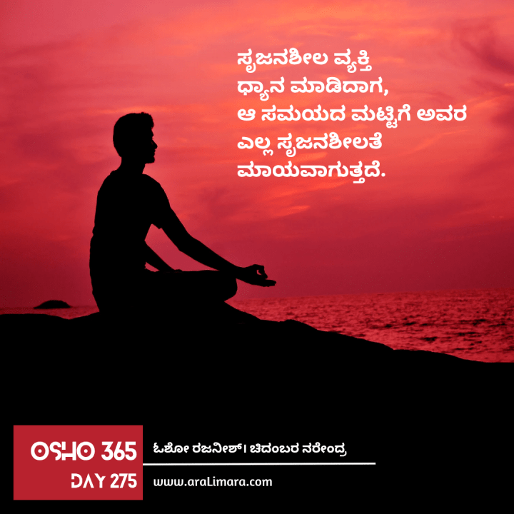 ಸೃಜನಶೀಲ ವ್ಯಕ್ತಿ ಧ್ಯಾನ ಮಾಡಿದಾಗ, ಆ ಸಮಯದ ಮಟ್ಟಿಗೆ ಅವರ ಎಲ್ಲ ಸೃಜನಶೀಲತೆ ಮಾಯವಾಗುತ್ತದೆ. ನೀವು ಪೇಂಟರ್ ಆಗಿದ್ದರೆ, ಥಟ್ಟನೇ ನೀವು ಪೇಂಟಿಂಗ್ ನಲ್ಲಿ ಕಾಣಿಸಿಕೊಳ್ಳುವುದಿಲ್ಲ. ನೀವು ಮುಂದುವರೆದಾಗ ನಿಧಾನವಾಗಿ ನಿಮ್ಮ ಸಾಮರ್ಥ್ಯ ಮತ್ತು ಉತ್ಸಾಹದಲ್ಲಿ ಕೊರತೆ ಕಂಡು ಬರುತ್ತದೆ. ನೀವು ಕವಿಯಾಗಿದ್ದರೆ ನಿಮ್ಮ ಕವಿತೆ ನಿಂತು ಹೋಗುತ್ತದೆ, ನೀವು ಪ್ರೇಮದಲ್ಲಿದ್ದರೆ, ನಿಮ್ಮ ಸಾಮರ್ಥ್ಯ ಮಾಯವಾಗುತ್ತದೆ. ಸಂಬಂಧದಲ್ಲಿ ಮುಂದುವರೆಯಲು ನೀವು ಫೋರ್ಸ್ ಮಾಡಿದಾಗ, ಇಂಥ ಒತ್ತಡ ಅಪಾಯಕಾರಿಯಾಗಿ ಪರಿಣಮಿಸುತ್ತದೆ. ಆಗ ನೀವು ದ್ವಂದ್ವಾತ್ಮಕ ಸಂಗತಿಗೆ ಮುಂದಾಗುತ್ತೀರಿ : ಒಂದು ಬದಿಯಲ್ಲಿ ಮುಂದುವರೆಯಲು ಪ್ರಯತ್ನ ಮಾಡುತ್ತಿದ್ದರೆ ಇನ್ನೊಂದು ಬದಿಯಲ್ಲಿ ಅದರಿಂದ ಹೊರ ಬರಲು ಯತ್ನಿಸುತ್ತಿದ್ದೀರಿ. ಇದು ಹೇಗೆಂದರೆ ನೀವು ಕಾರ್ ಡ್ರೈವ್ ಮಾಡುತ್ತಿರುವಾಗಲೇ ಏಕಕಾಲದಲ್ಲಿ accelerator ಮತ್ತು brake ಮೇಲೆ ಕಾಲಿಡುತ್ತಿದ್ದೀರಿ. ಇದು ಅಪಾಯಕಾರಿ ಏಕೆಂದರೆ ನೀವು ಎರಡು ವಿರುದ್ಧ ಸಂಗತಿಗಳನ್ನು ಏಕಕಾಲದಲ್ಲಿ ಮಾಡುತ್ತಿದ್ದೀರಿ.