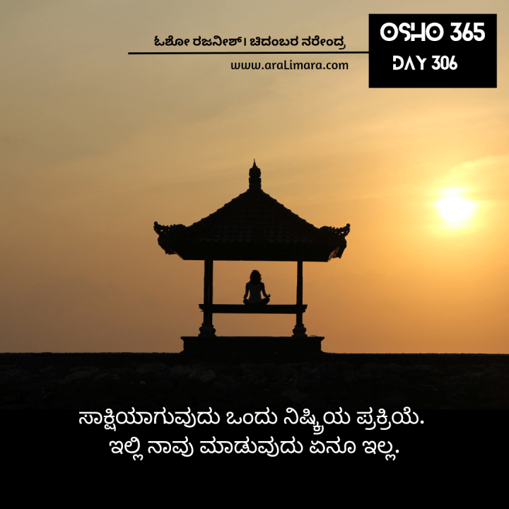 ಸಾಕ್ಷಿಯಾಗುವುದು ಒಂದು ನಿಷ್ಕ್ರಿಯ ಪ್ರಕ್ರಿಯೆ. ಇಲ್ಲಿ ನಾವು ಮಾಡುವುದು ಏನೂ ಇಲ್ಲ. ಇದು ಒಂದು ಬಗೆಯ ಮಾಡದೇ ಇರುವುದು. ಇದು ಬೌದ್ಧ ಧ್ಯಾನ – ಬಹಳ ಒಳ್ಳೆಯದು, ಆದರೆ ಅಪೂರ್ಣವಾದದ್ದು. ಆದ್ದರಿಂದ ಇಲ್ಲಿ ಸಮತೋಲನ ಇಲ್ಲ. ಬೌದ್ಧರು ಪ್ರಶಾಂತರಾಗಿದ್ದಾರೆ, ಸಮಾಧಾನಿಗಳಾಗಿದ್ದಾರೆ ನಿಜ ಆದರೆ ಅವರು ಆನಂದವನ್ನು ಮಿಸ್ ಮಾಡಿಕೊಂಡಿದ್ದಾರೆ.