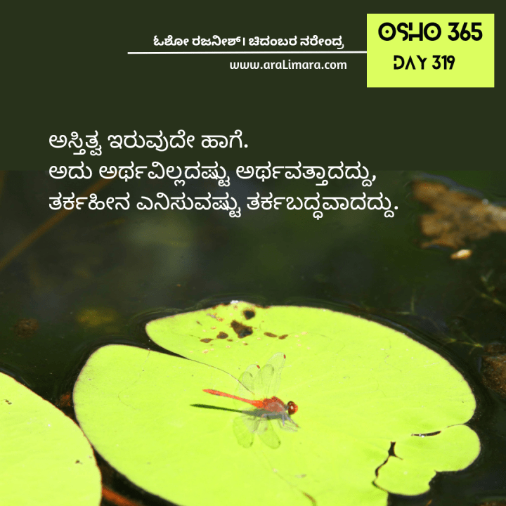 ನೀವು ಅಸಂಗತರಾಗಿರಬೇಕೆಂದು ನಾನು ಬಯಸುತ್ತೇನೆ, ಏಕೆಂದರೆ ಇಡೀ ಅಸ್ತಿತ್ವ ಇರುವುದೇ ಹಾಗೆ. ಅದು ಅರ್ಥವಿಲ್ಲದಷ್ಟು ಅರ್ಥವತ್ತಾದದ್ದು, ತರ್ಕಹೀನ ಎನಿಸುವಷ್ಟು ತರ್ಕಬದ್ಧವಾದದ್ದು. ಎಲ್ಲ ವಿರೋಧಾಭಾಸಗಳು, ಎಲ್ಲ ದ್ವಂದ್ವಗಳು ಅಂತರಂಗದ ಸೌಹಾರ್ದದಲ್ಲಿ ಒಂದಾಗಿವೆ. ಸ್ವತಃ ನೀವೇ ಅಸಂಗತ ಎಂದು ನಿಮಗೆ ಅನಿಸುವುದಿಲ್ಲವೆ? ಇಲ್ಲಿ ನಿಮ್ಮ ಅವಶ್ಯಕತೆ ಇದೆ ಎನ್ನುವುದನ್ನ ಹೇಗೆ ಪ್ರೂವ್ ಮಾಡುತ್ತೀರಿ? ಅಸ್ತಿತ್ವಕ್ಕೆ ನಿಮ್ಮ ಅವಶ್ಯಕತೆ ಇದೆಯೇ? ನಿಮ್ಮ ಹೊರತಾಗಿಯೂ ಅಸ್ತಿತ್ವ ಇರಬಲ್ಲದು, ಪರಿಪೂರ್ಣವಾಗಿ ಇರಬಲ್ಲದು. ಹಾಗಾಗಿ ಇಲ್ಲಿ ನಿಮ್ಮ ಇರುವಿಕೆಯ ಪಾಯಿಂಟ್ ಏನು?